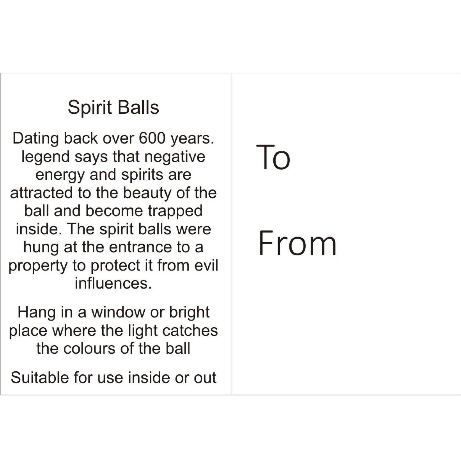 Spirit balls were traditionally hung in peoples their gardens and windows to ward of demons and evil spirits. Legend says that evil spirits are attracted to the beauty of the ball and are then trapped inside thus protecting the home from harm.