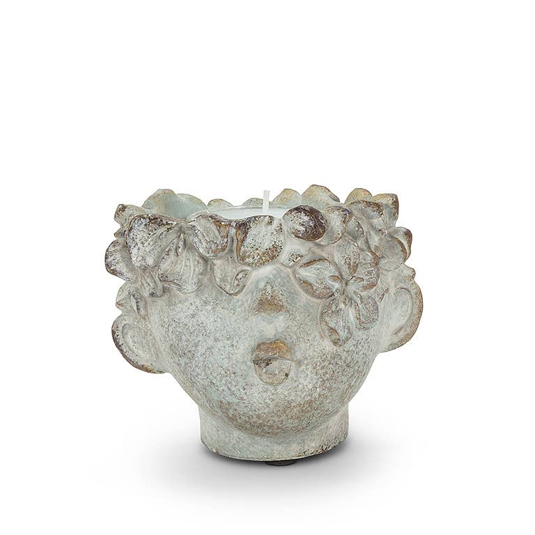 There's nothing quite as cute as a kiss — or a Kissing Face Maxilight Holder. Crafted out of cement, this grey maxilight candle holder is sculpted in a style reminiscent of classic Greco-Roman art. Featuring a floral-crowned face with pouty, puckered lips, it makes an adorable addition to any style of decor. Assorted sizes of Kissing Face Planters also available.