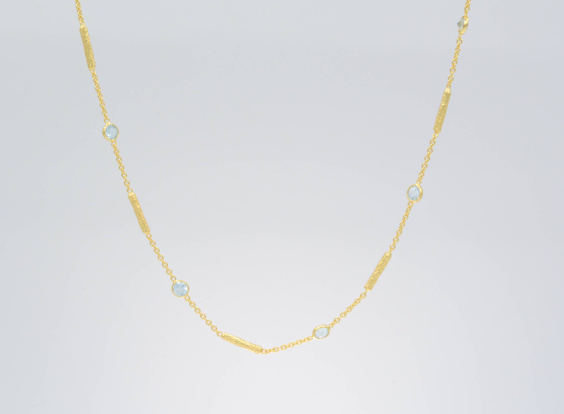 AJS Design Studio - Blue topaz necklace with textured tube spacers