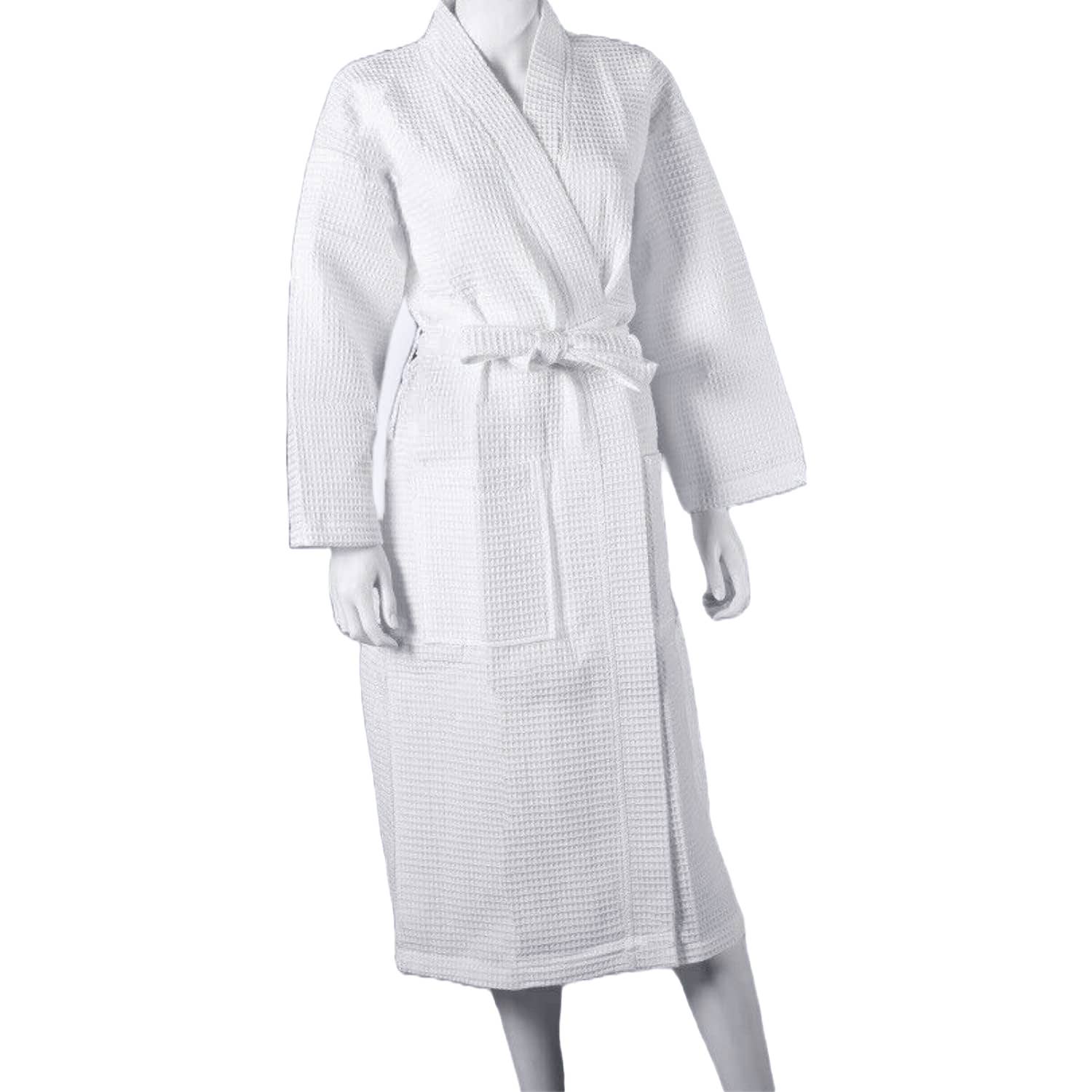 Allure Bath Fashions - Unisex Lightweight Waffle Bathrobe, Spa Dressing Gown Kimono: White / S/M
