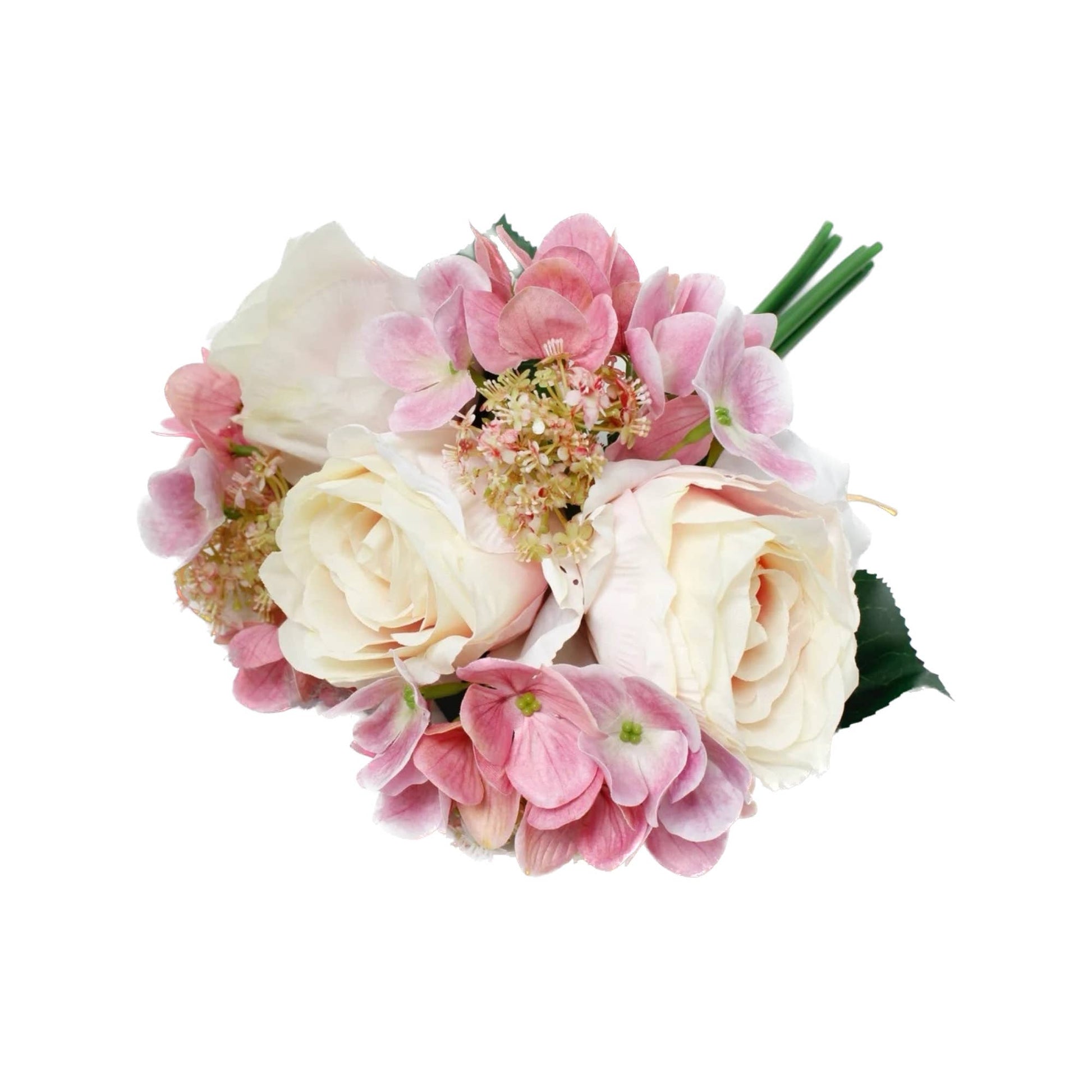 Angel Isabella - 12"-Rose Hydrangea Pre-tied bouquet Faux Flowers: Mixed Hotpink blush