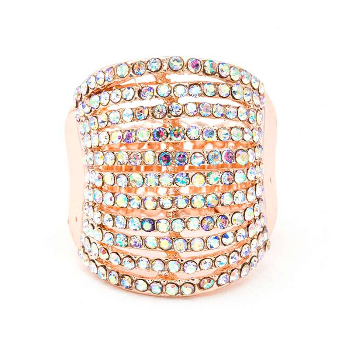 Artini Accessories - Layered Crystals Stretch Ring: Gold/Clear