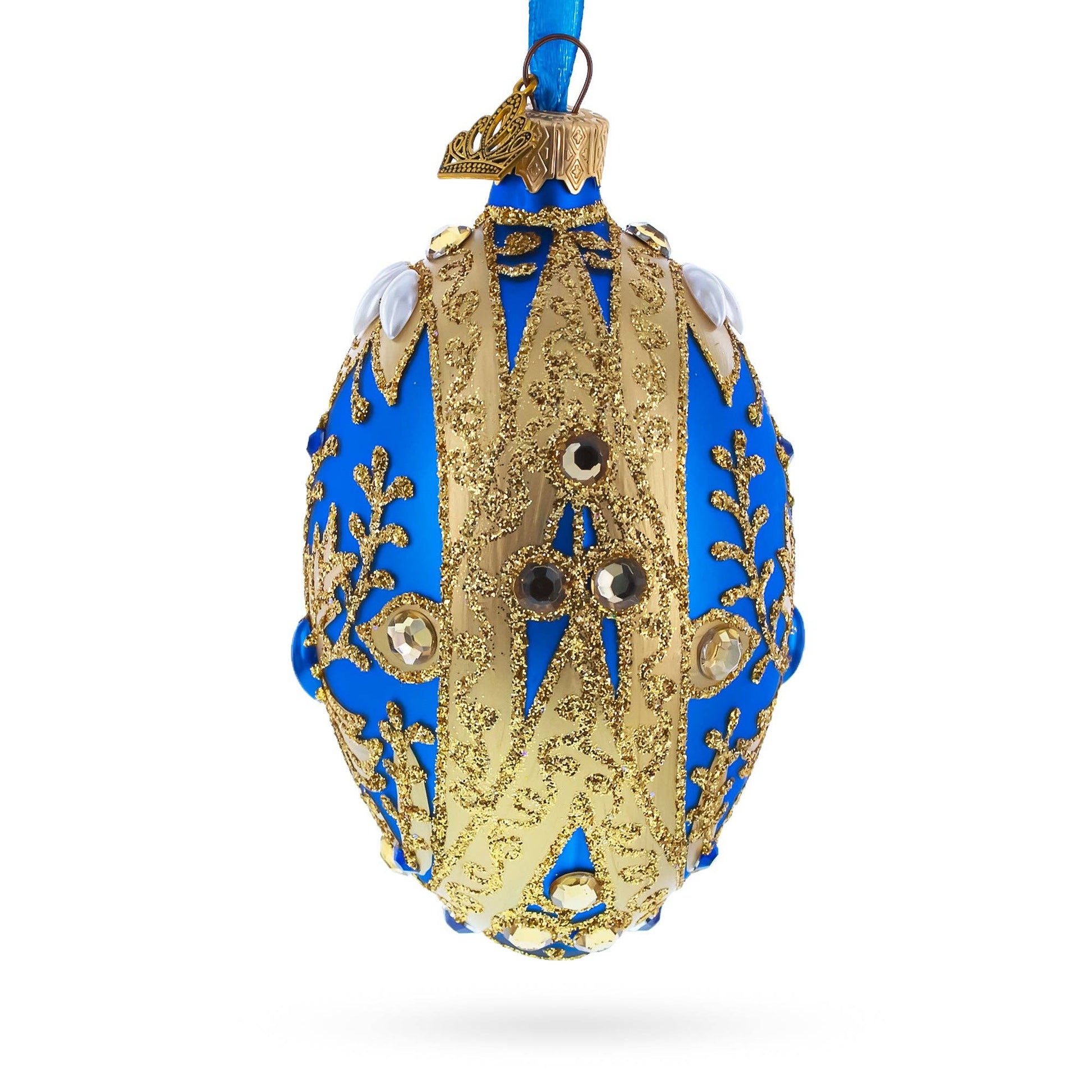 BestPysanky - Golden Swirls on Blue Glass Egg Ornament