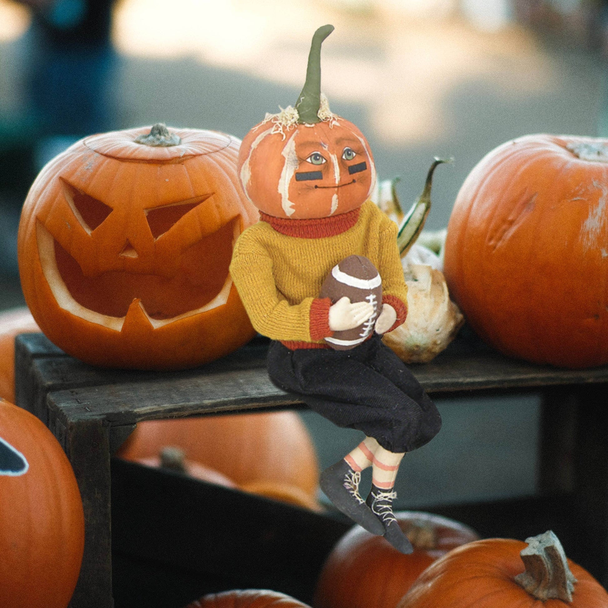 Defense Dan may not be the quarterback, but after the homecoming game, he is the hero of the team. Defense Dan kept the rival football team at bay and ensured a win for his team, The Fighting Pumpkins! Display this sports hero with more Gathered Traditions' soft figures by Joe Spencer to bring your festive fall collection to life. Whimsically wonderful, this uniquely handcrafted art doll from Joe Spencer's Gathered Traditions collection will bring a touch of fun to your home during the fall season. Create a matching set with our Lucille collectible.