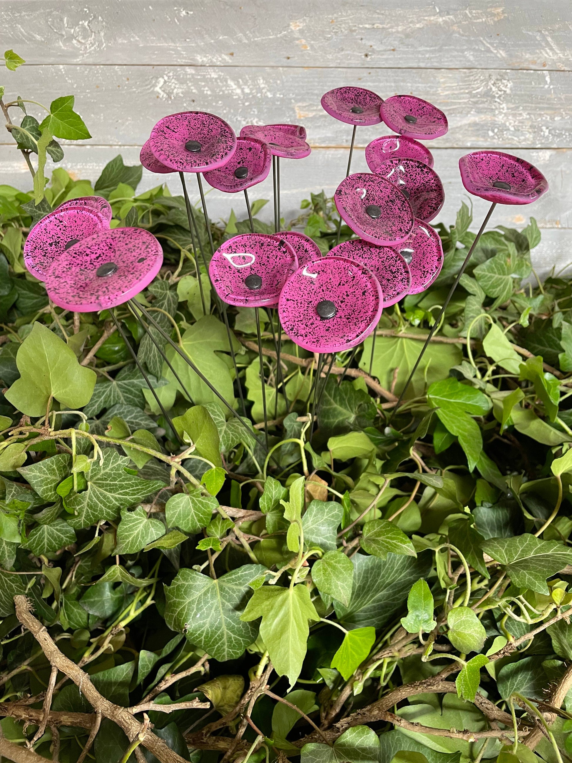 CARNEOL GLASS - Small Glass Flower For Inside In Fuscia-Black