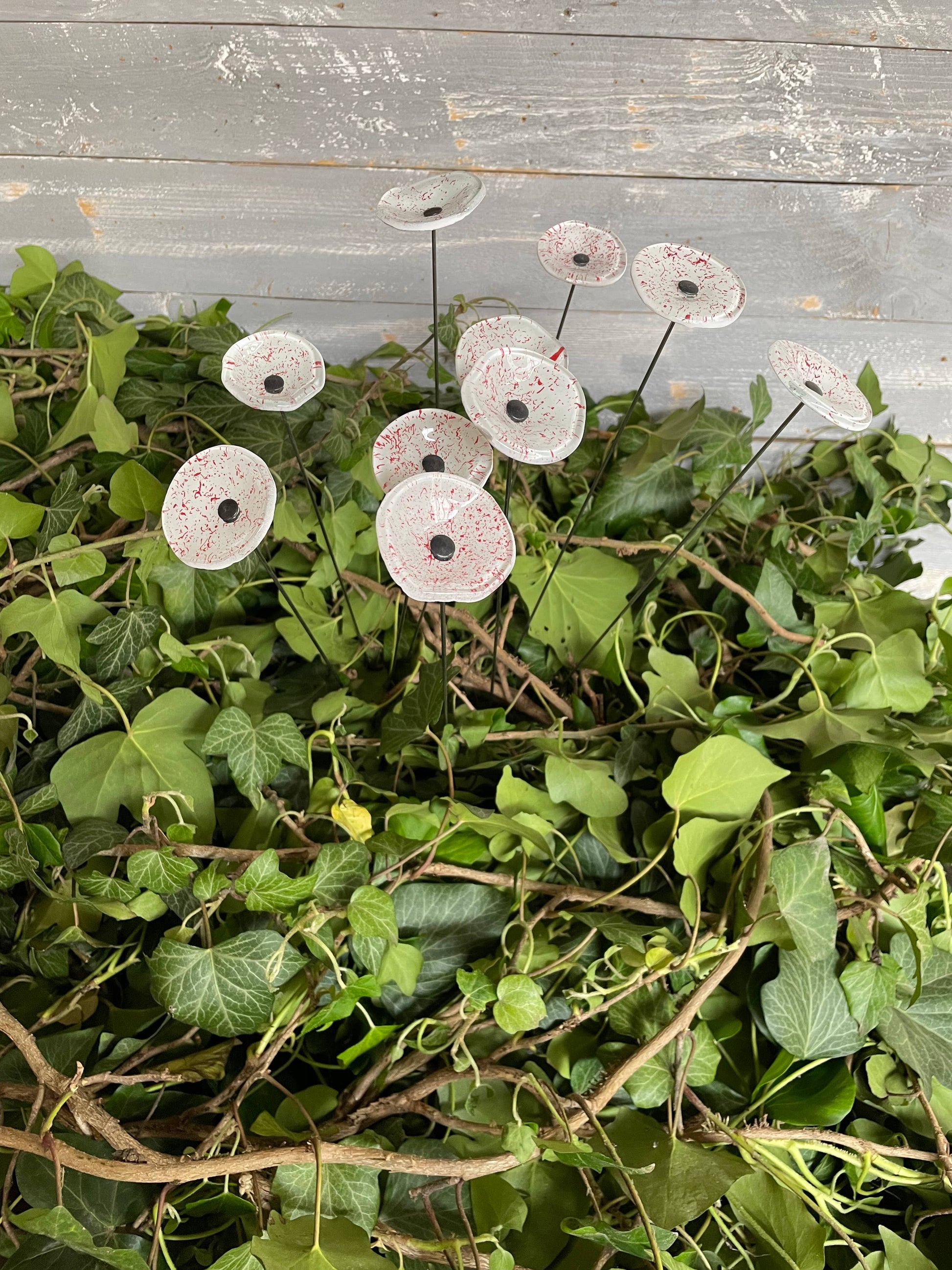 CARNEOL GLASS - Small Glass Flower For Inside In White-Red