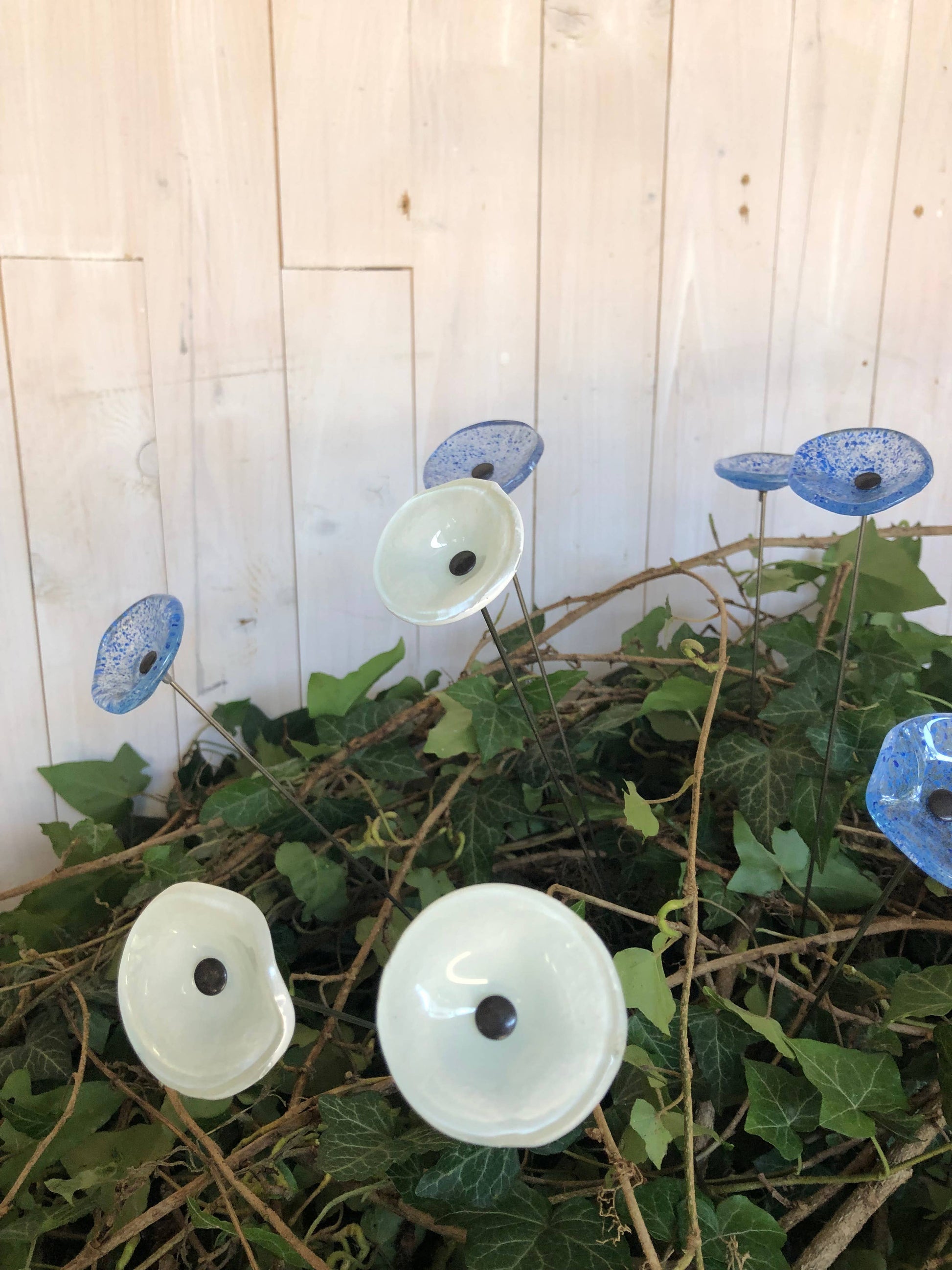 CARNEOL GLASS - Small Glass Flower For Outside In Transp.-D.Blue