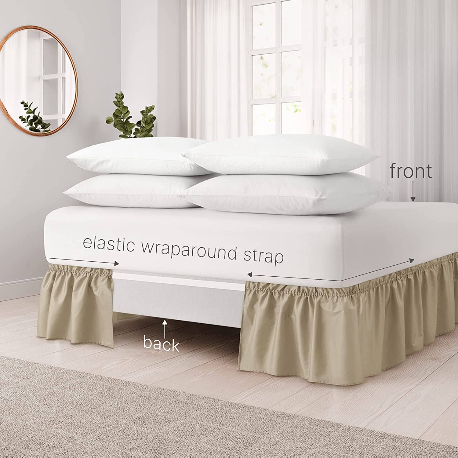 CGK Unlimited - Elastic Wrap-Around Dust Ruffled Bed Skirt- Pleated 15" Drop: Cream / King