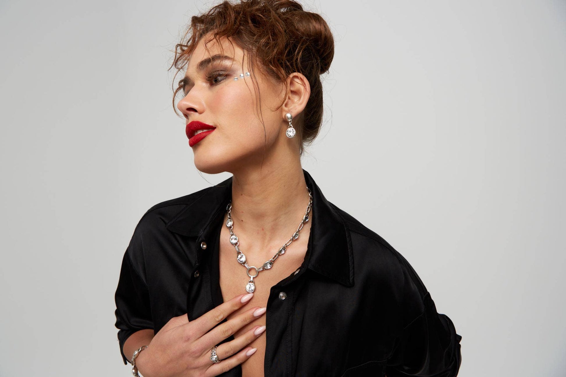 • We use Swarovski crystals in a variety of jewelry styles, including earrings, necklaces, bracelets, and more.