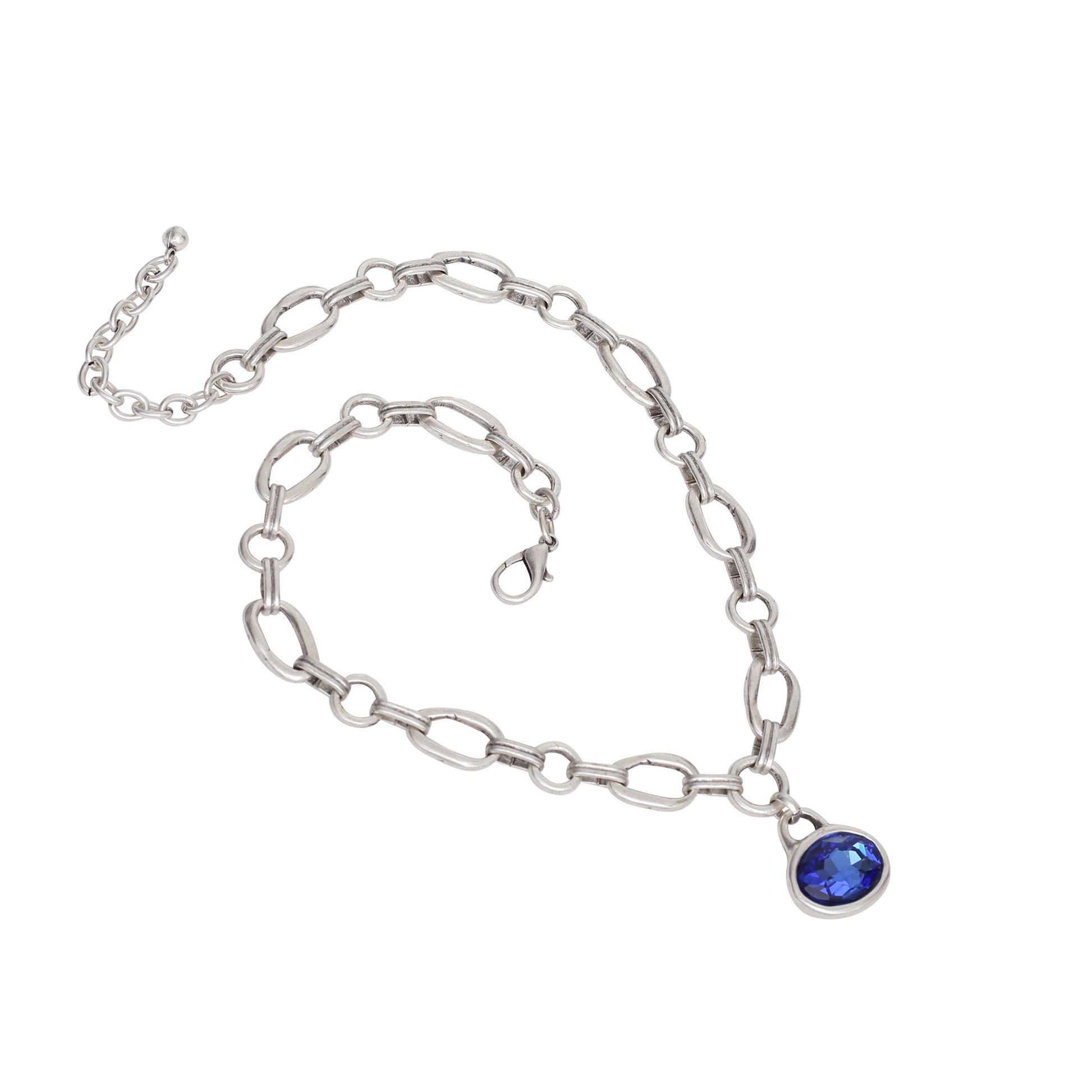 Chanour - Handmade Blue Oval Crystal Pewter Necklace - 3933