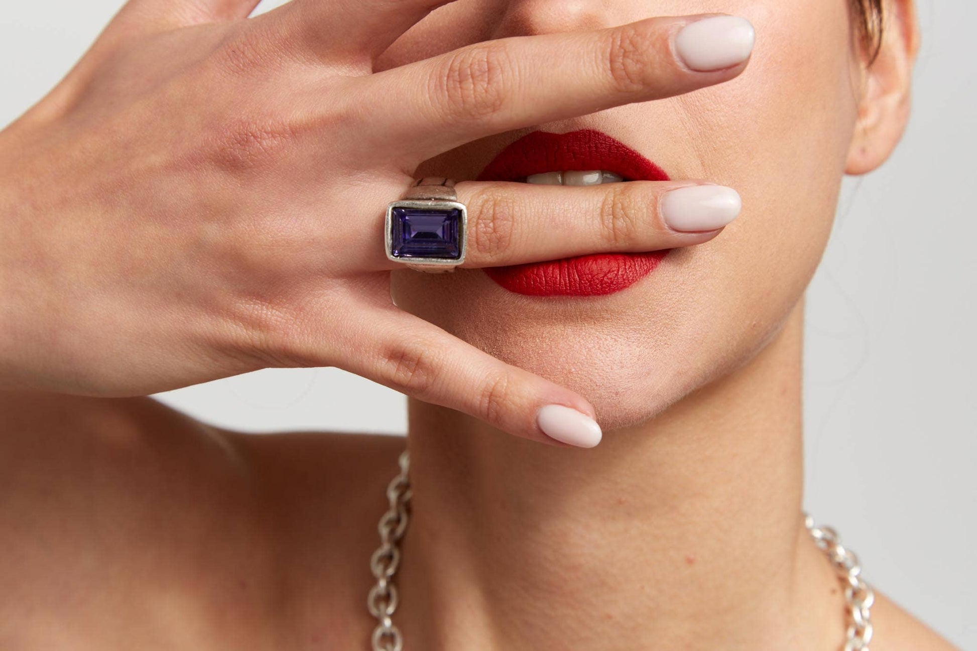 Chanour - Handmade Purple Crystal Brass Ring - 6915