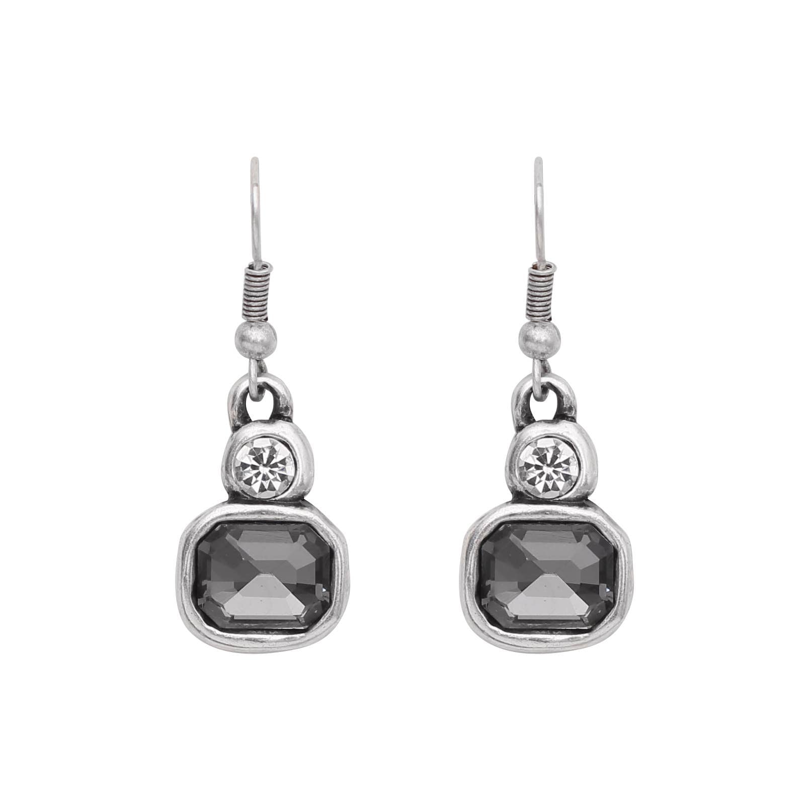 Chanour - Handmade Smoky Crystal Pewter Earrings - 1950