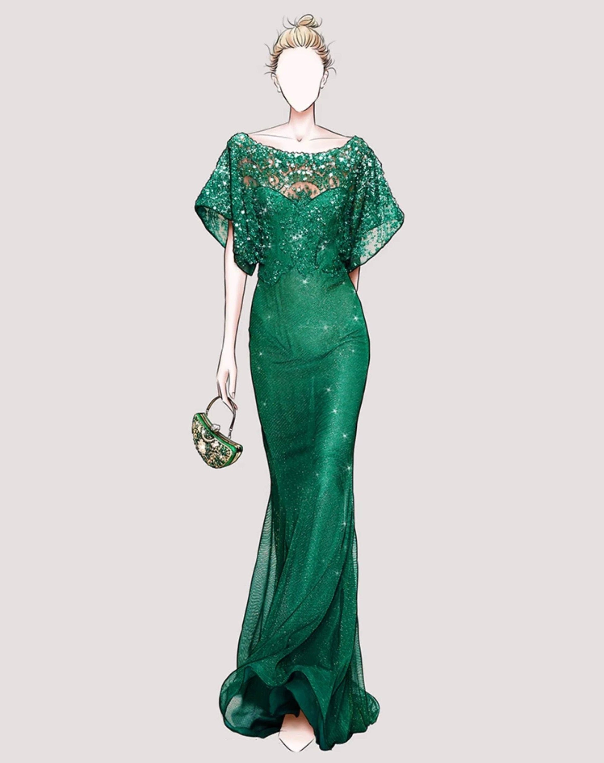 Radiating sophistication, this clutch boasts a fancy royal green hue that exudes opulence and style. Designed to dazzle, it is adorned with dazzling transparent crystals and emerald green crystals, creating a mesmerizing shimmer that catches every eye.