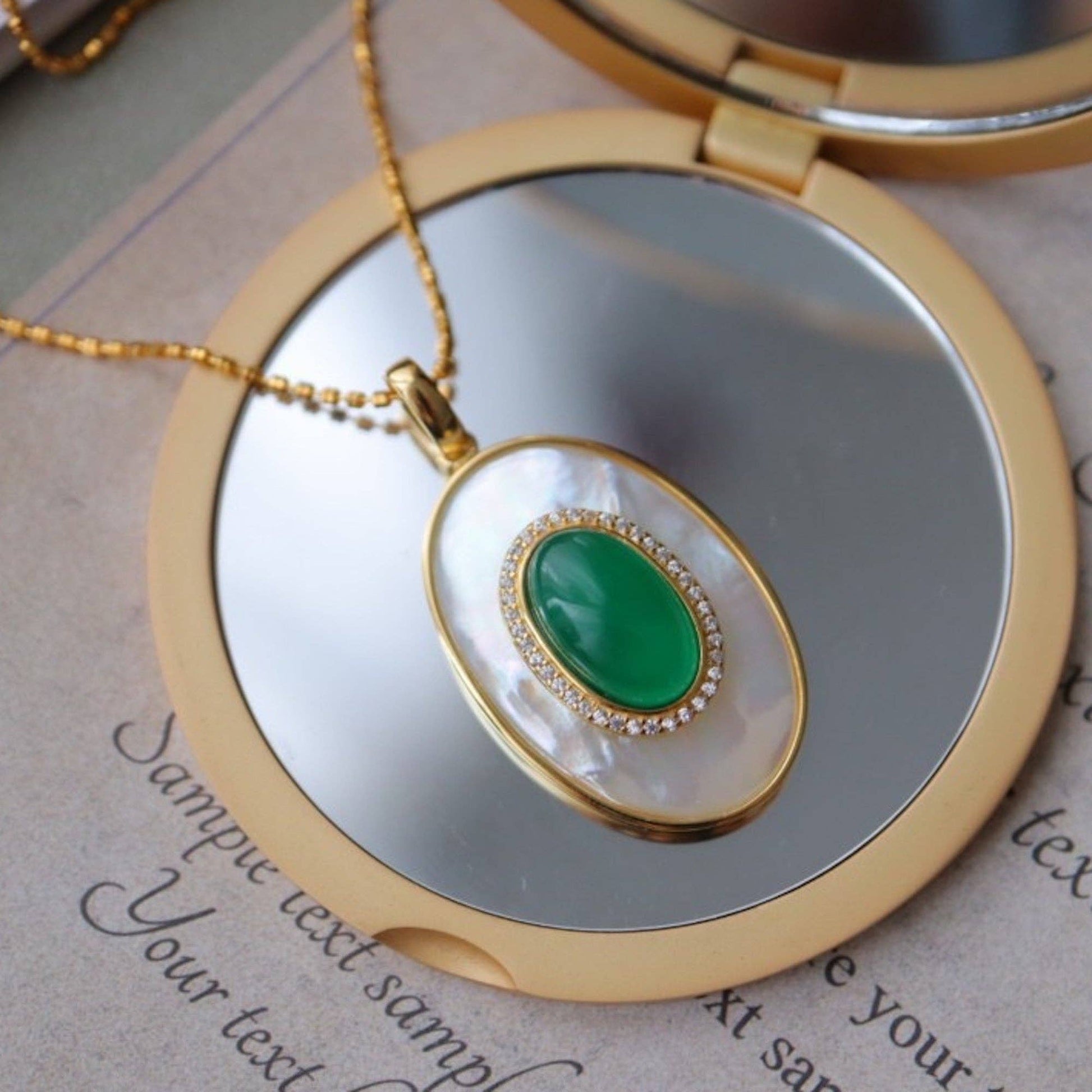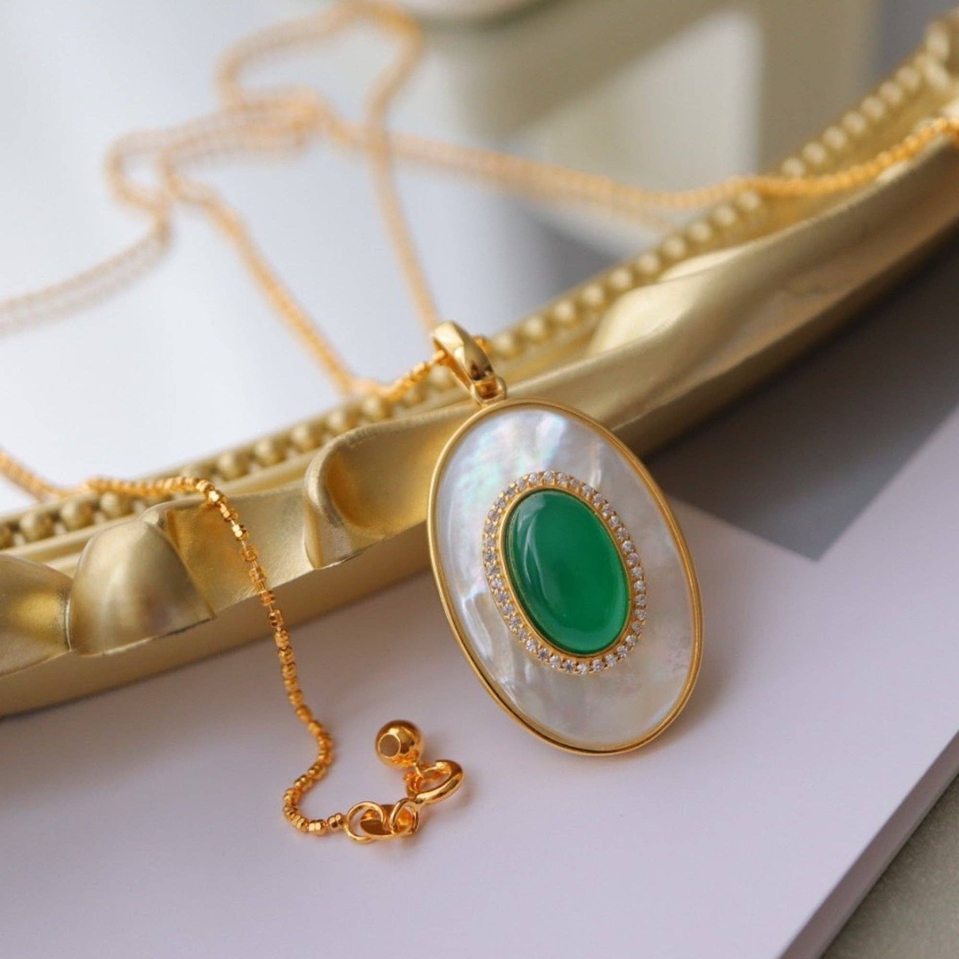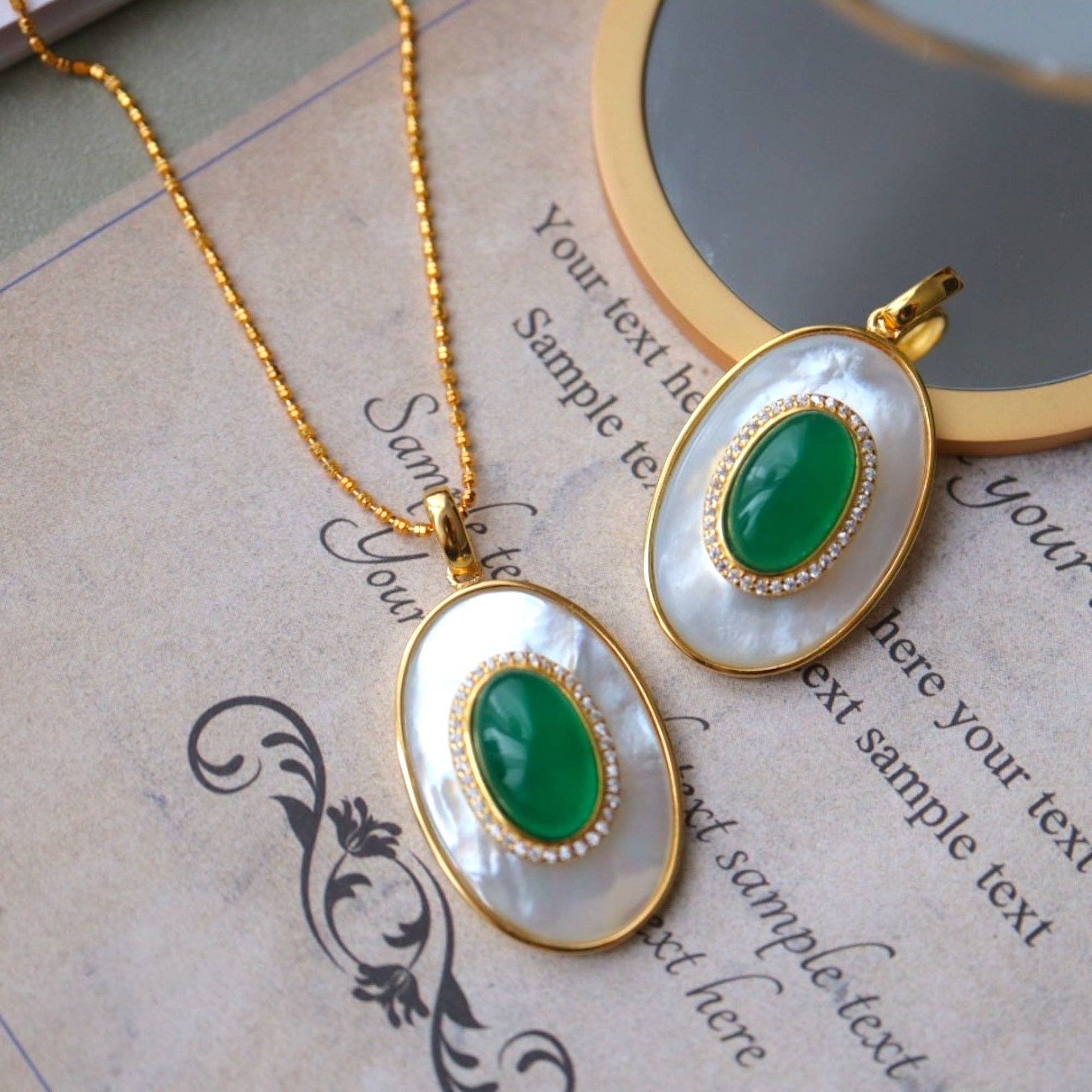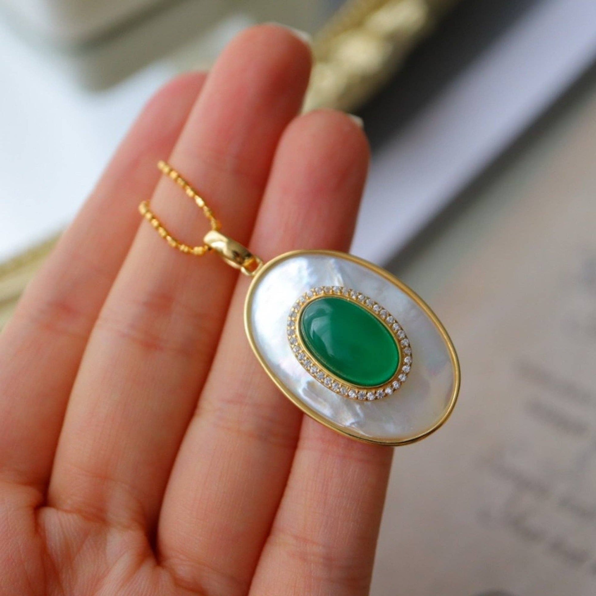 Cici’De Jewelry Amsterdam - Royal Green Onyx MOP Large oval pendant - Pendant Only