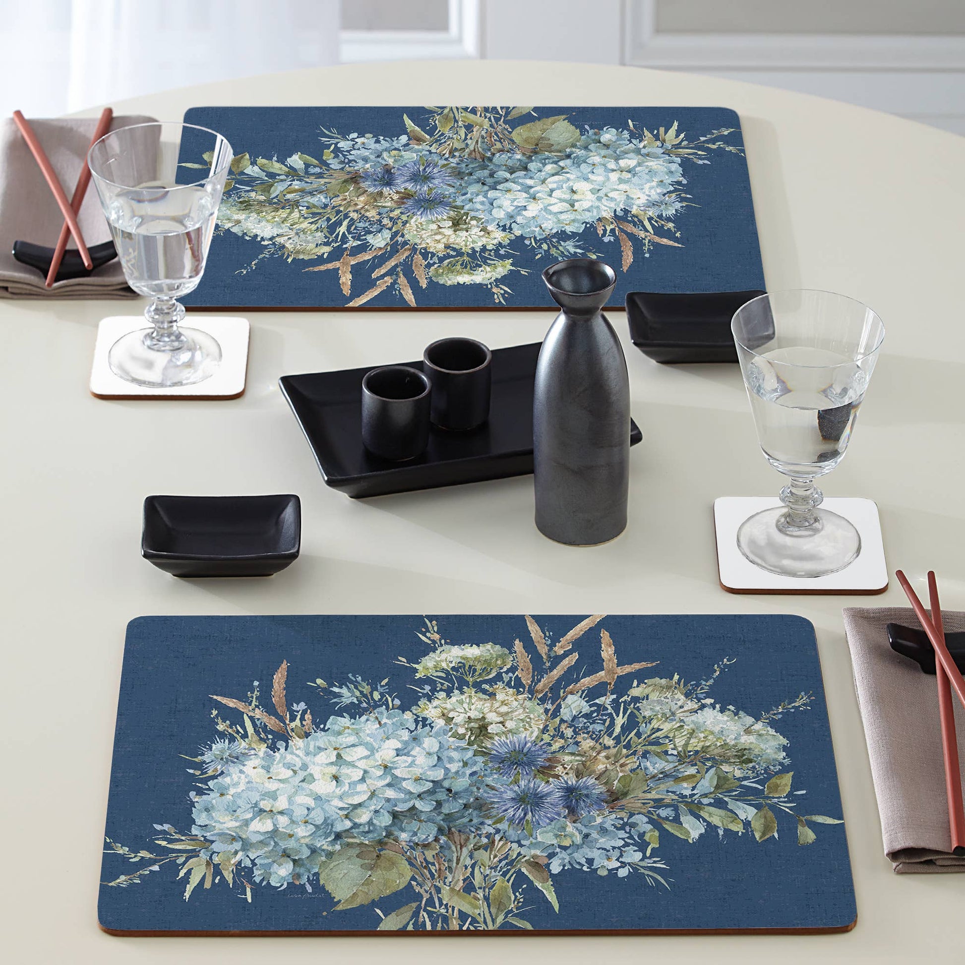 Set of 4 Decorative Hardboard Placemats with a Cork Backing. Placemats arrive in elegant gift box that can also be used to store them. Made with a layered construction. The surface of the mats is coated with protective lacquer. Heat resistant to 212 degrees Fahrenheit. The art is laminated to a wood composite layer. A soft cork backing protects the table surface from scratches. - Beautiful artistic design allow the Placemats to remain displayed even when not in use. Leading, Trending Artists in the industry work with us to create artistic designs that will add beauty and distinction to your Dining Space. Decorative Placemats are an easy way to change the look of your kitchen, dining room, or outdoor eating area. Placemats measure 15.75” L x 11.5” W and are rectangular in shape. Look for Cala Home matching Hardboard Coasters to complete your Tabletop Design.