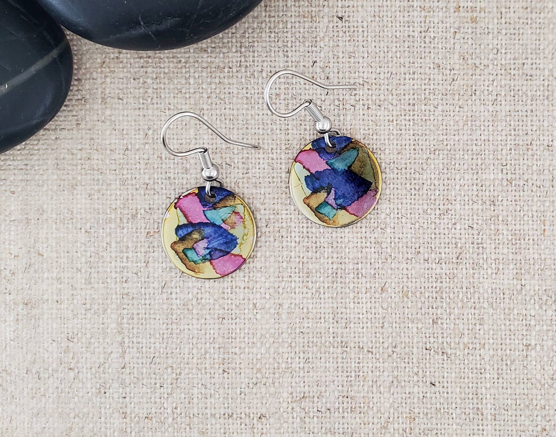-The stainless steel earring blanks are hand painted with alcohol ink.