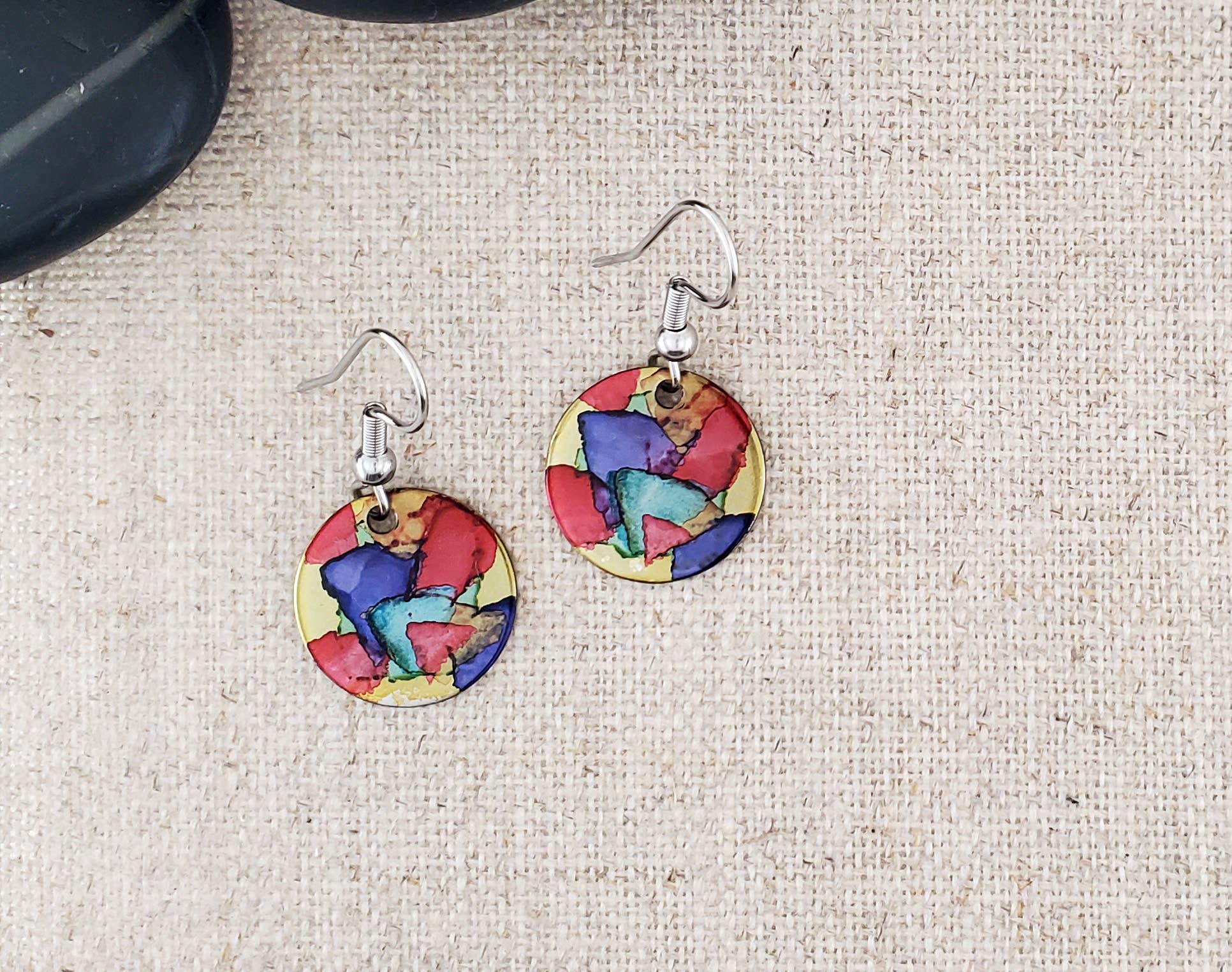 -The stainless steel earring blanks are hand painted with alcohol ink.