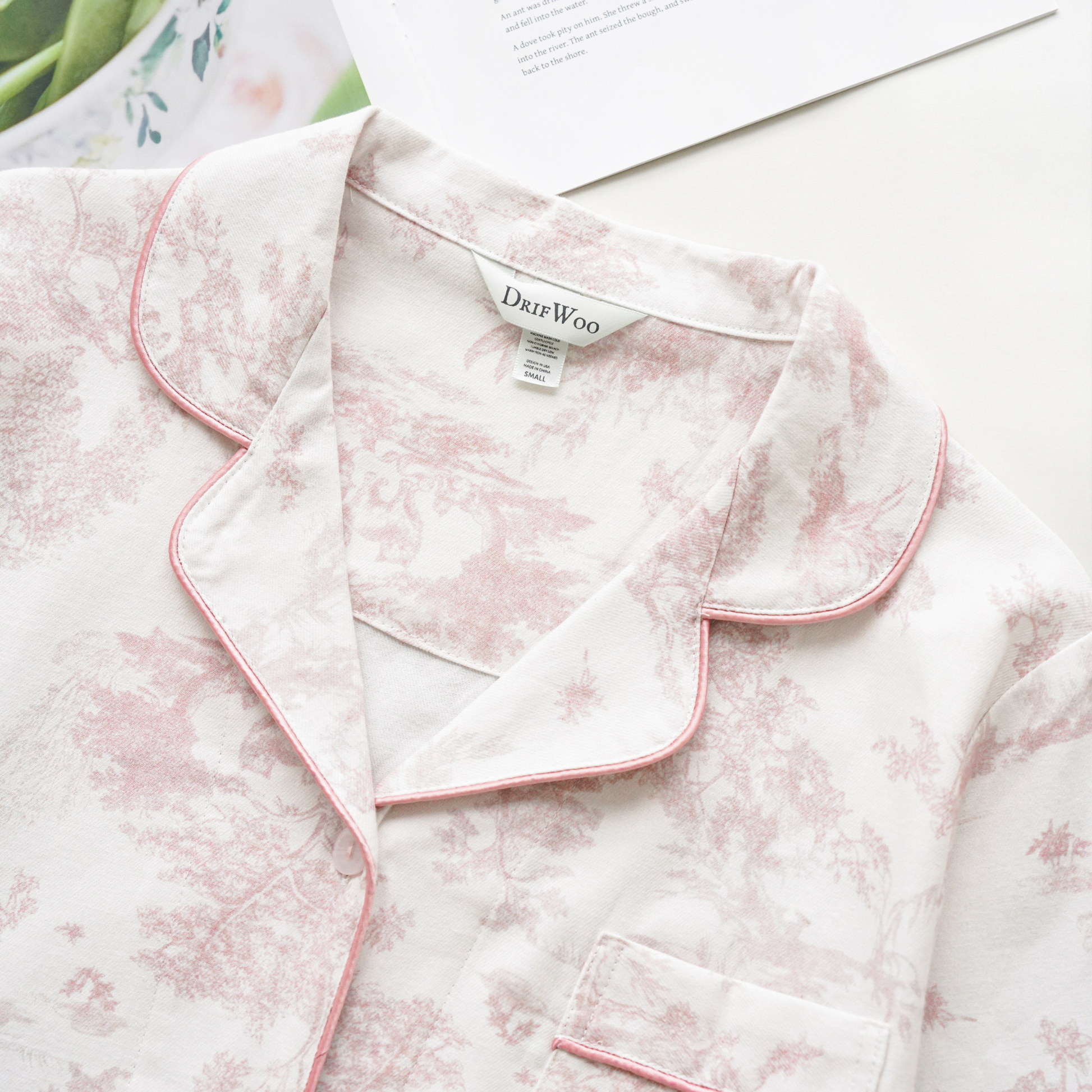 DrifWoo - Soft Pink Toile Print Loungewear – Spring Cozy Homewear: M