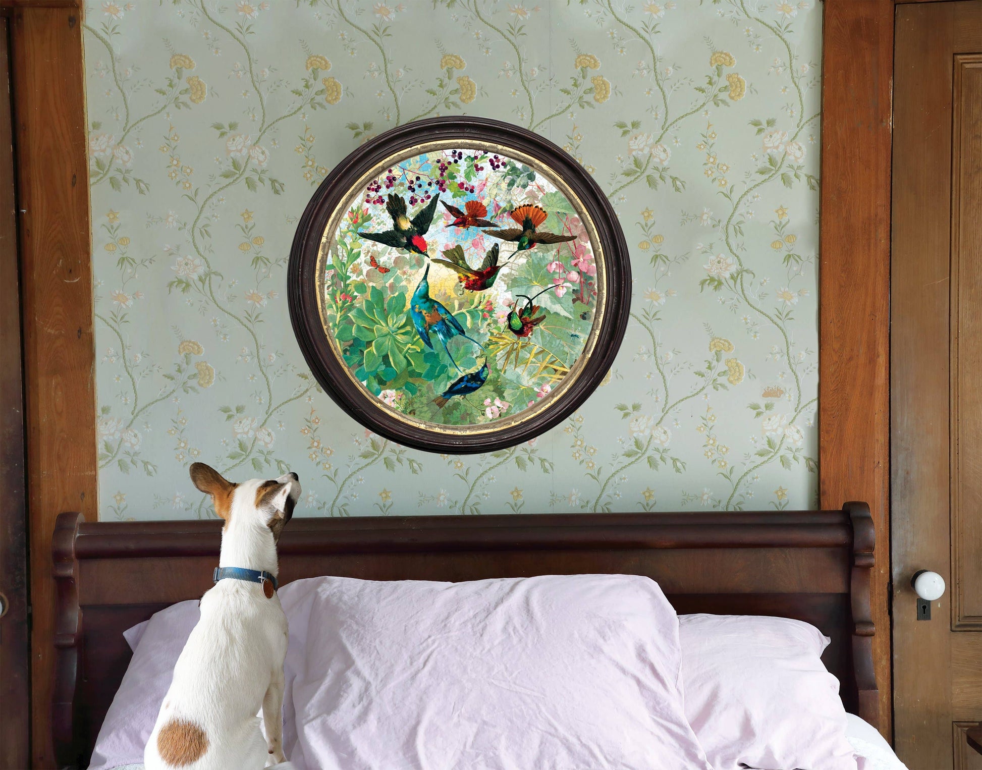 Take on the extra challenge of a round jigsaw puzzle inspired by vintage ornithological illustrations. This beautiful garden full of hummingbirds in flight will transport any family of puzzlers into focused calm.