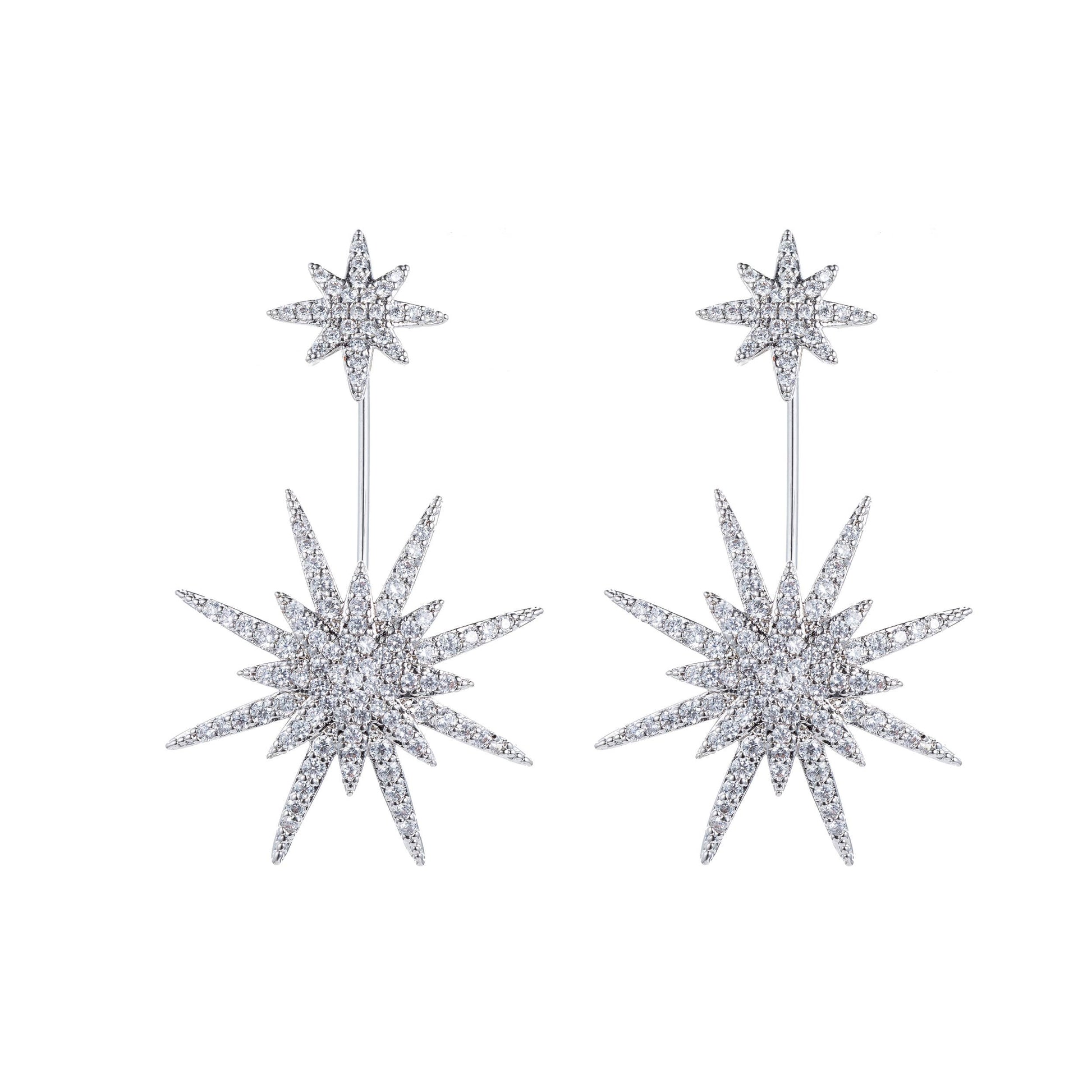 Shine bright like the North Star itself with these star pendant earrings on! Gold brass joins with zirconia crystals to give these gold earrings their beautiful appearance. Everyone is going to love these drop earrings on you!