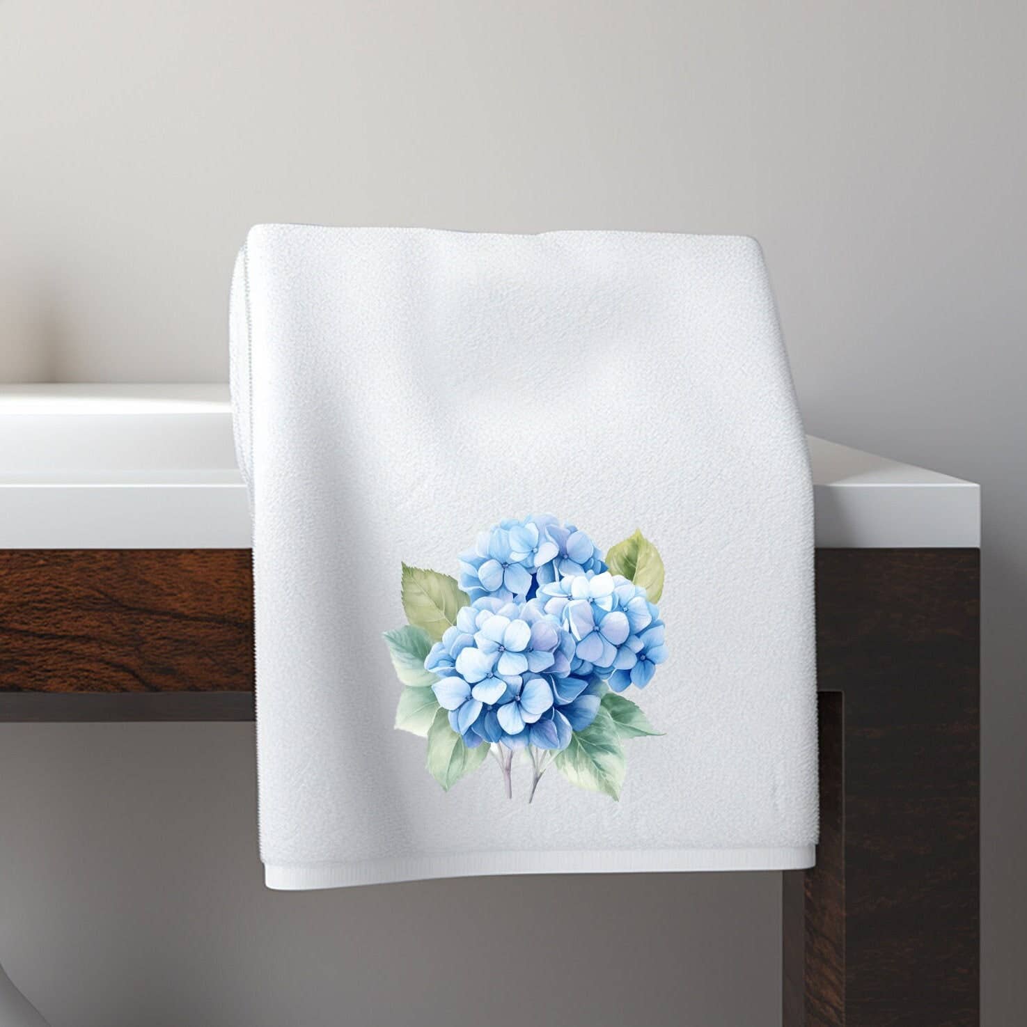 Blue Hydrangea Towel, Blue Bath Decor, Elegant Hand Towel, Powder Room Towel, Guest Bath Towel, Velour Towel, Kitchen or Bath Hand Towel