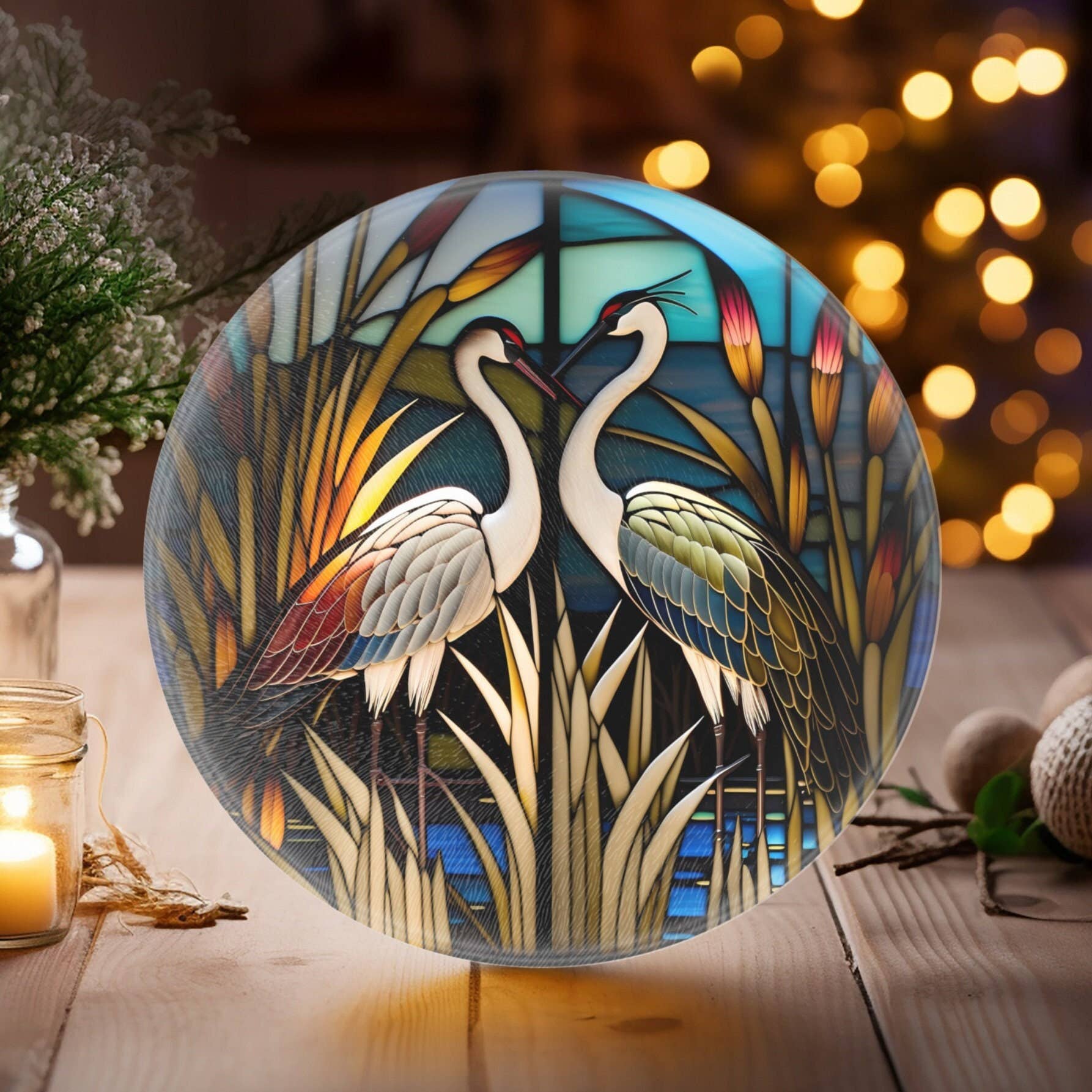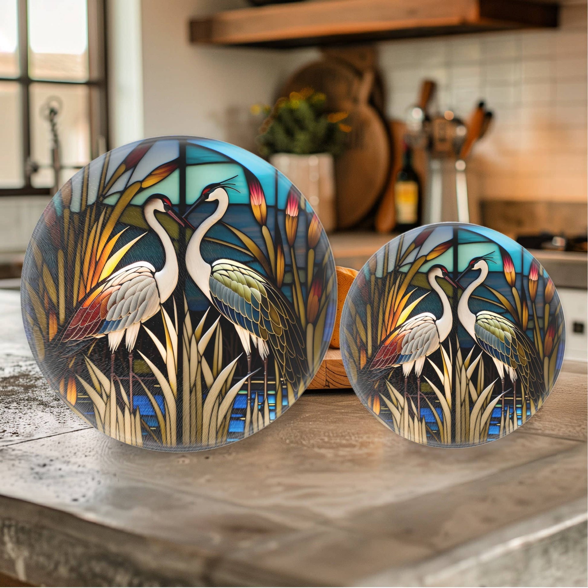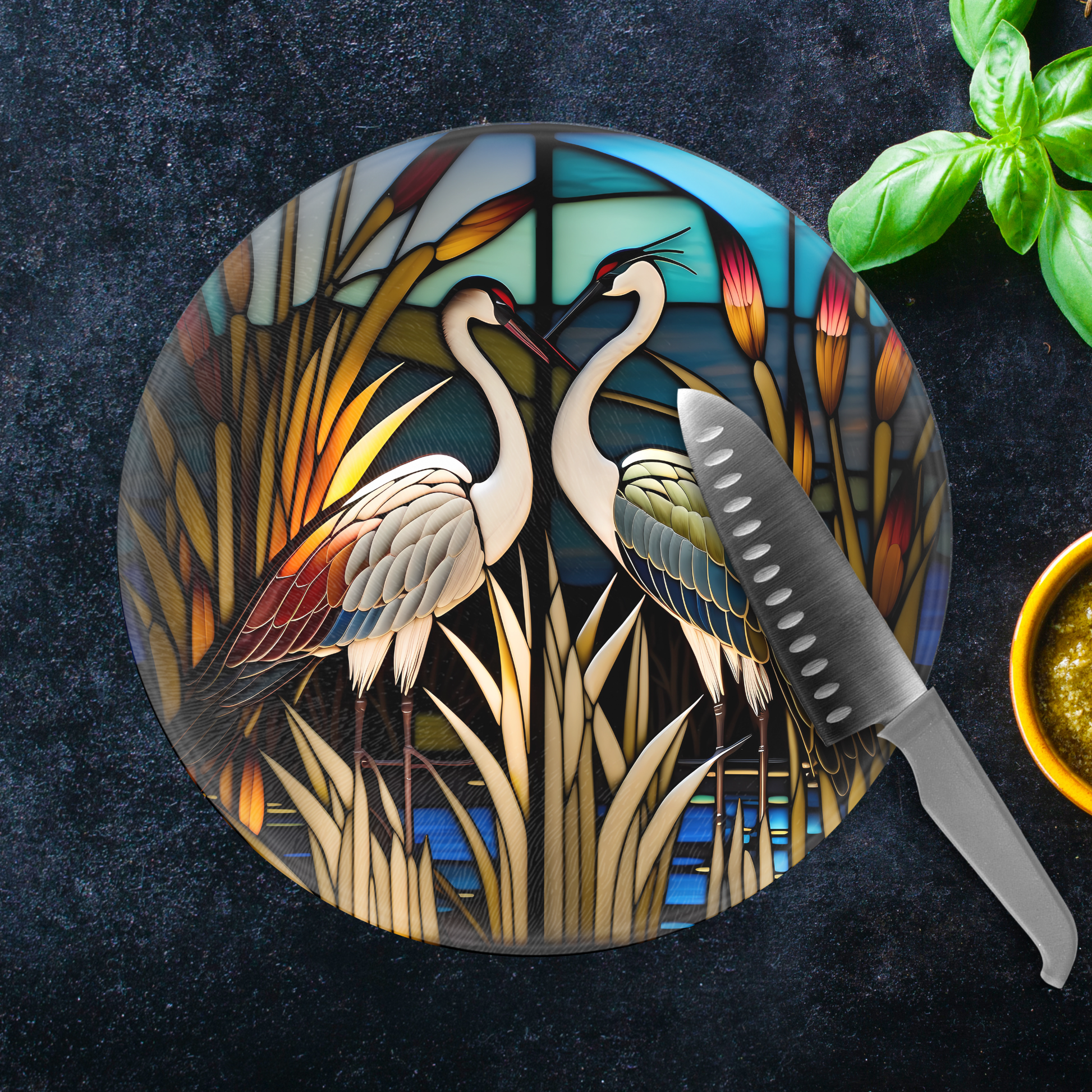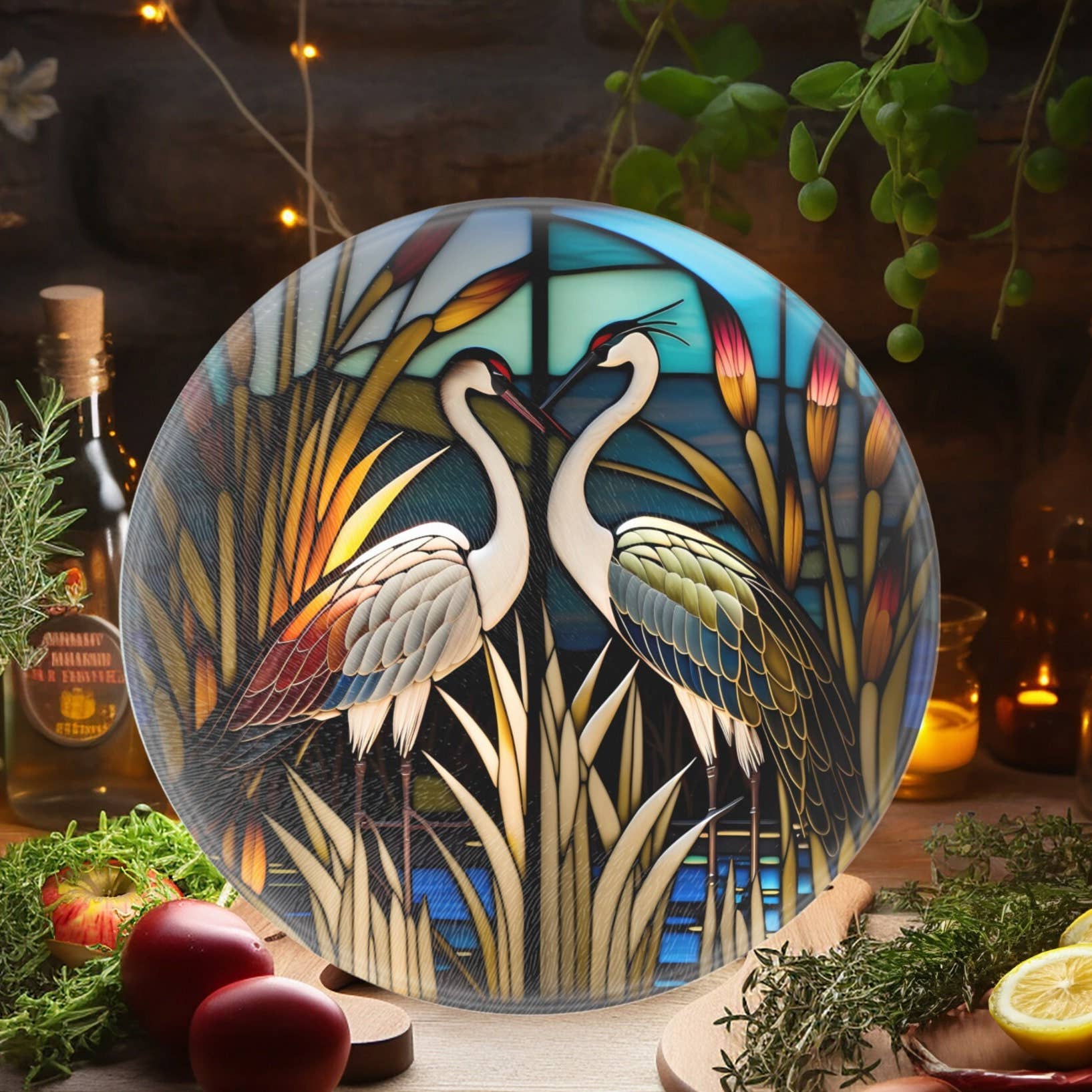 Fernville Creations - Crane Charcuterie Tempered Glass Cutting Board, Serving Tray: 12 - Inch