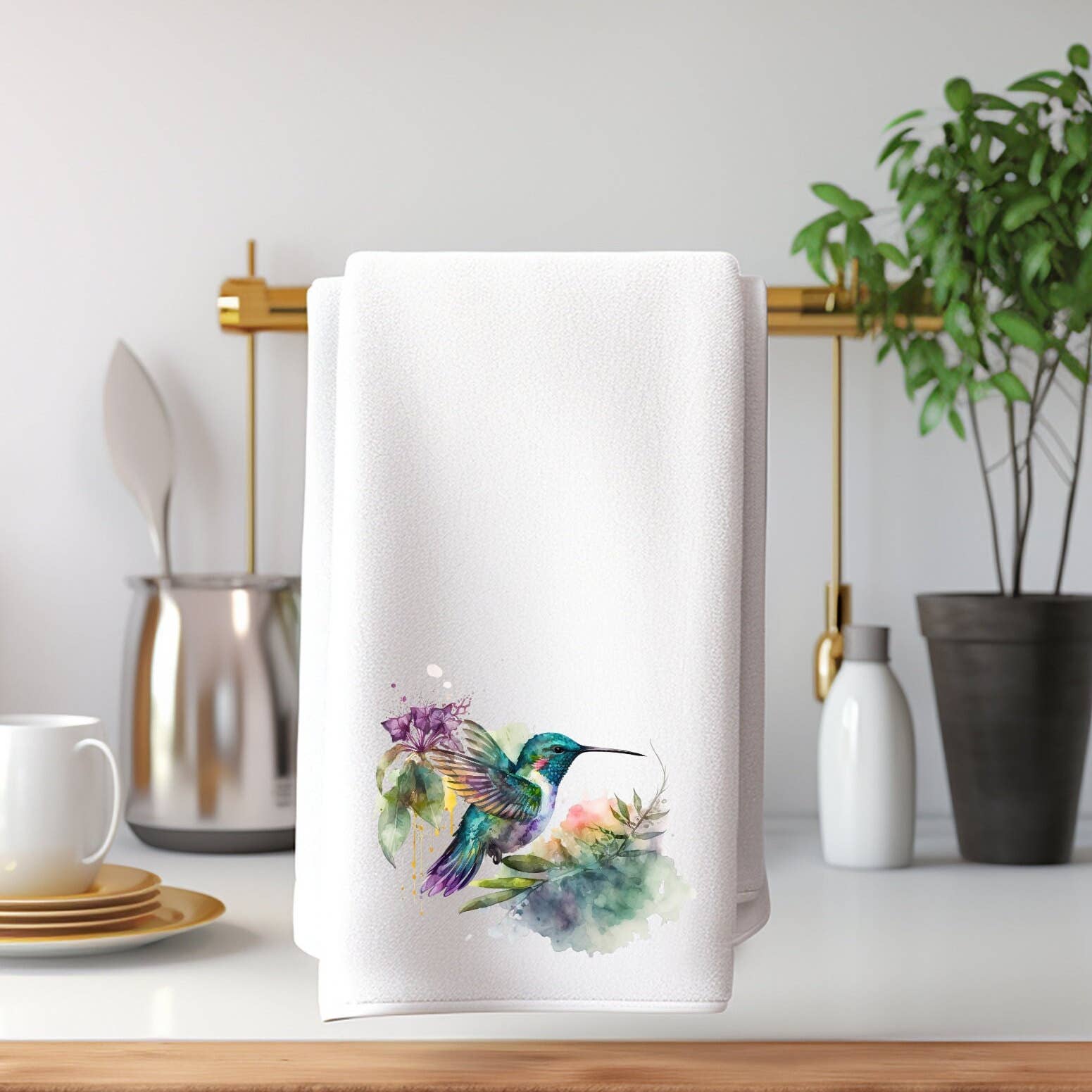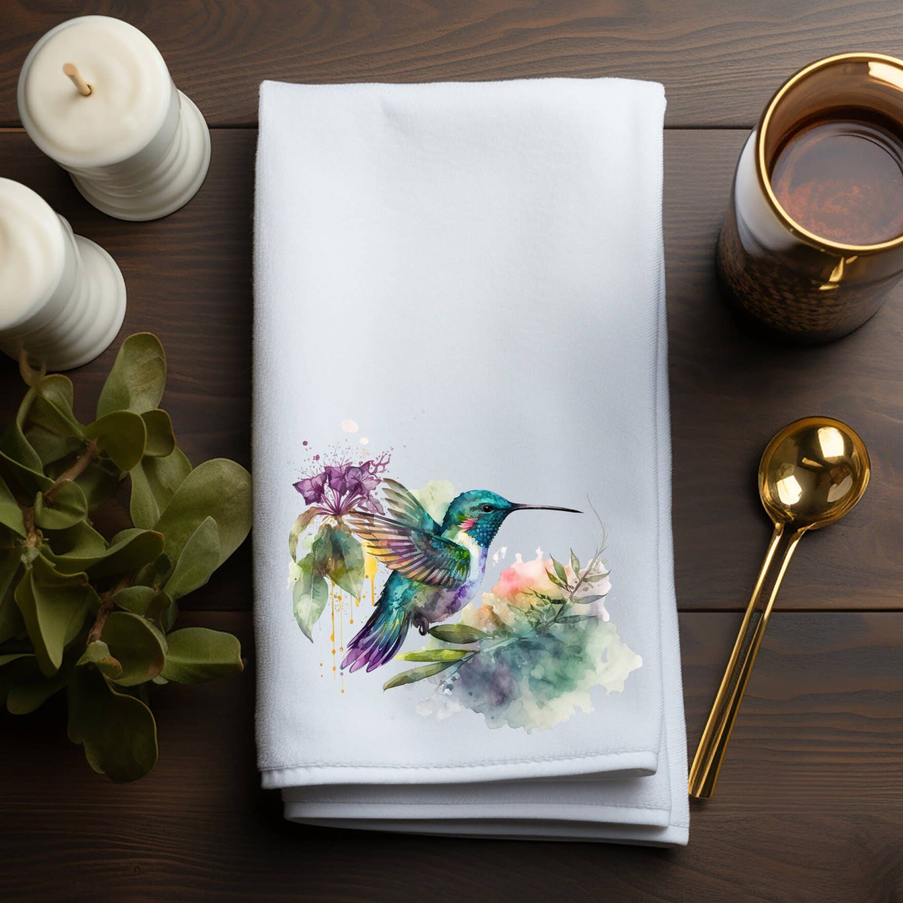 Hummingbird Hand Towel, Watercolor Hummingbird, Bathroom Hand Towel, Hummingbird Bath Art, Luxury Guest Bath, Elegant Hand Towel