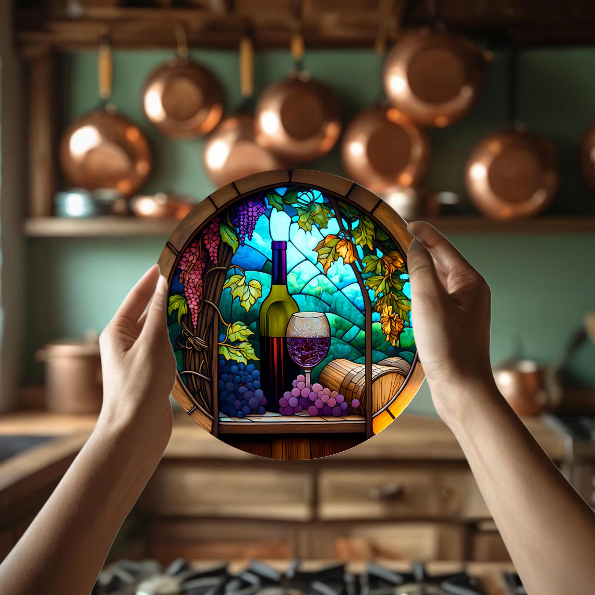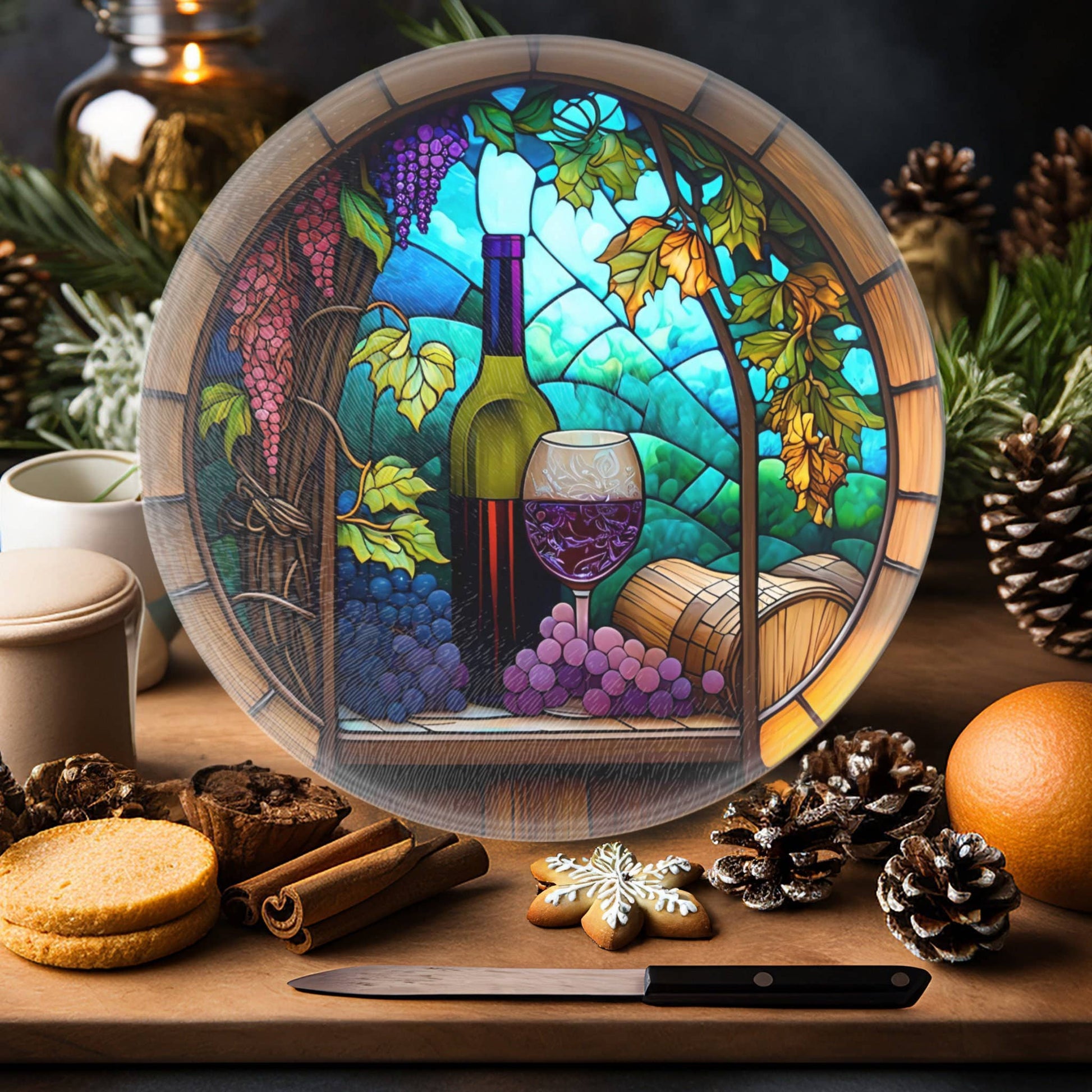 Fernville Creations - Wine Theme Cutting Board, Printed Image on Tempered Glass: 12 Inch