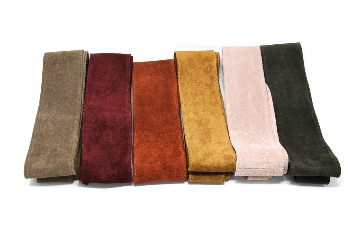 The CINT-01 Wrap Belt Suede from German Fuentes Handbags is a thick, wrappable belt crafted from the finest suede, offering both durability and style. It's designed to accentuate any outfit, making it a perfect addition to your boutique's collection.