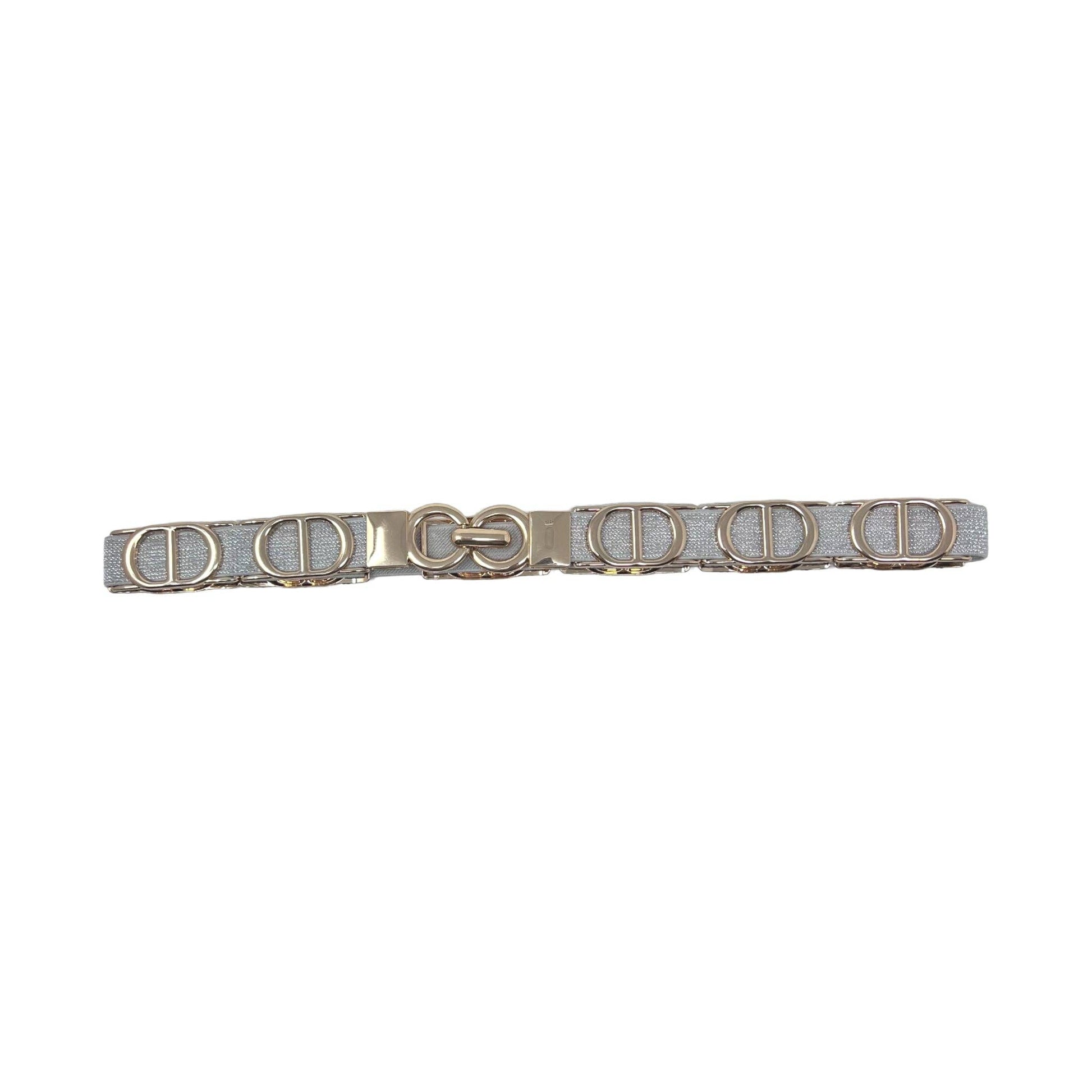 This accessory is designed to fit a variety of sizes, boasting a flexible and stretchy construction that ensures comfort and adaptability. The eye-catching metallic inserts add a touch of elegance and sophistication.