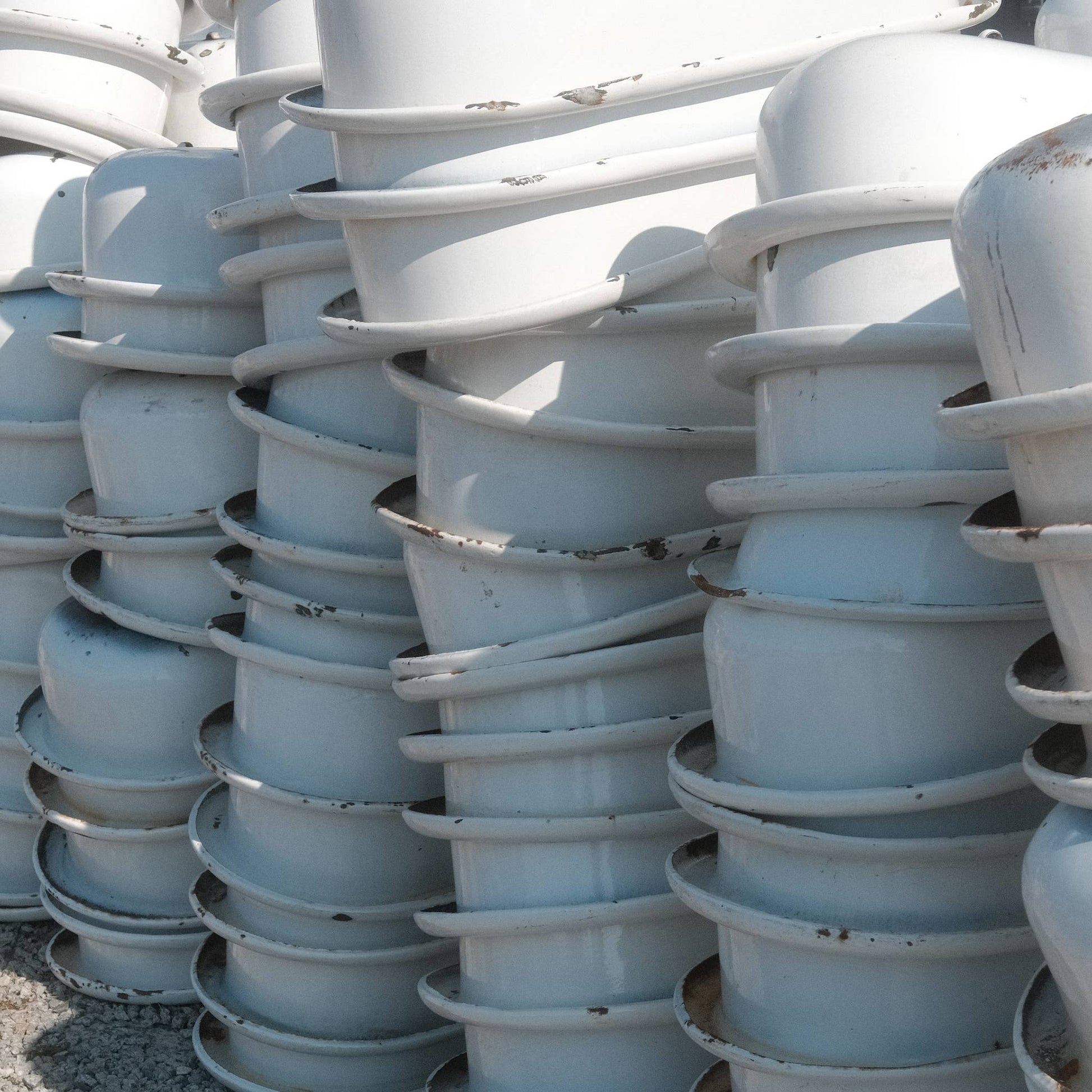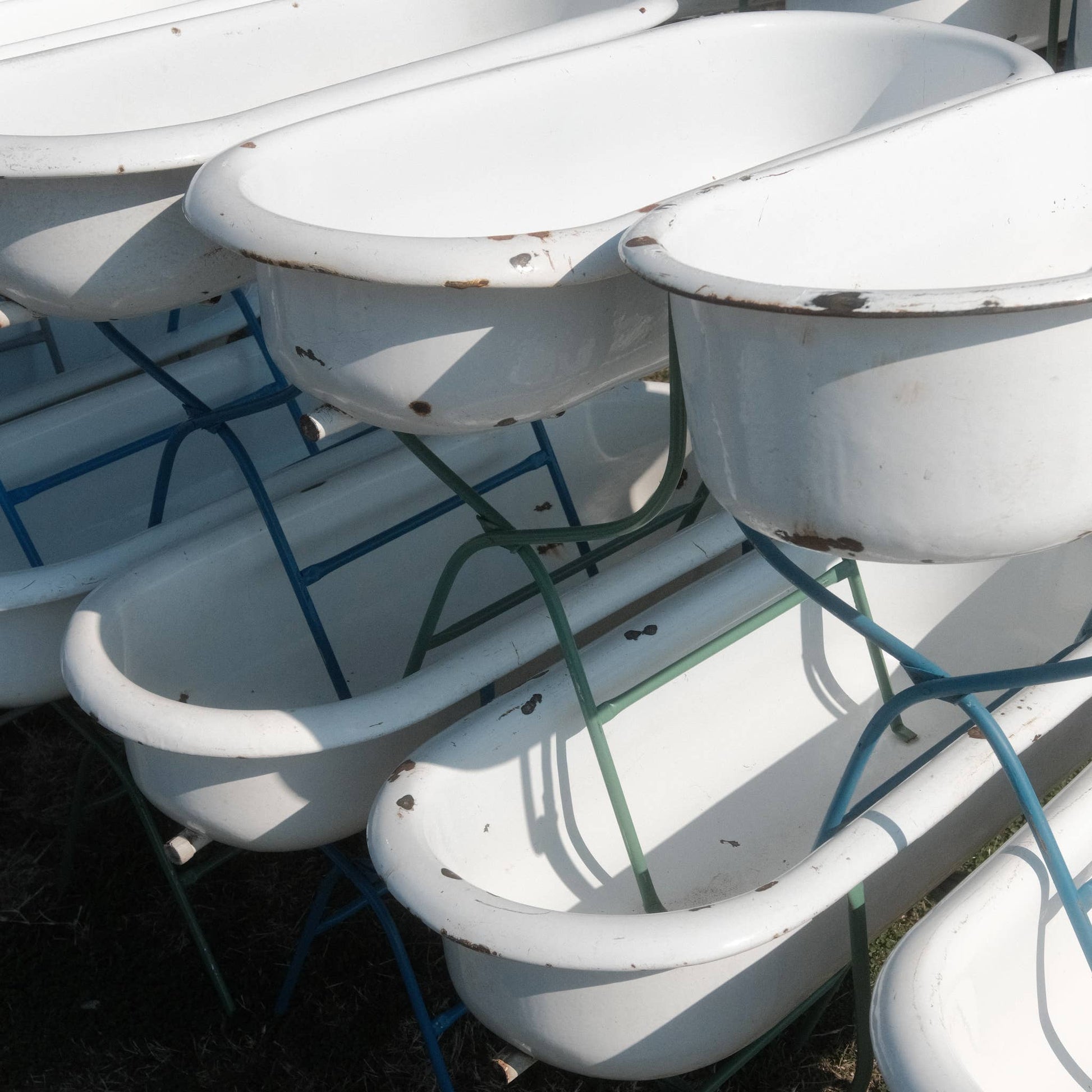 Disclaimer: Please note that these vintage tubs may exhibit minor chipping and rust, adding to their unique character. Each tub boasts its own level of patina, reflecting its rich history and charm. While some tubs are equipped with a drain at one end, functionality may vary, and others may not feature a drain. These variations contribute to the distinctiveness of each piece, ensuring no two are exactly alike.