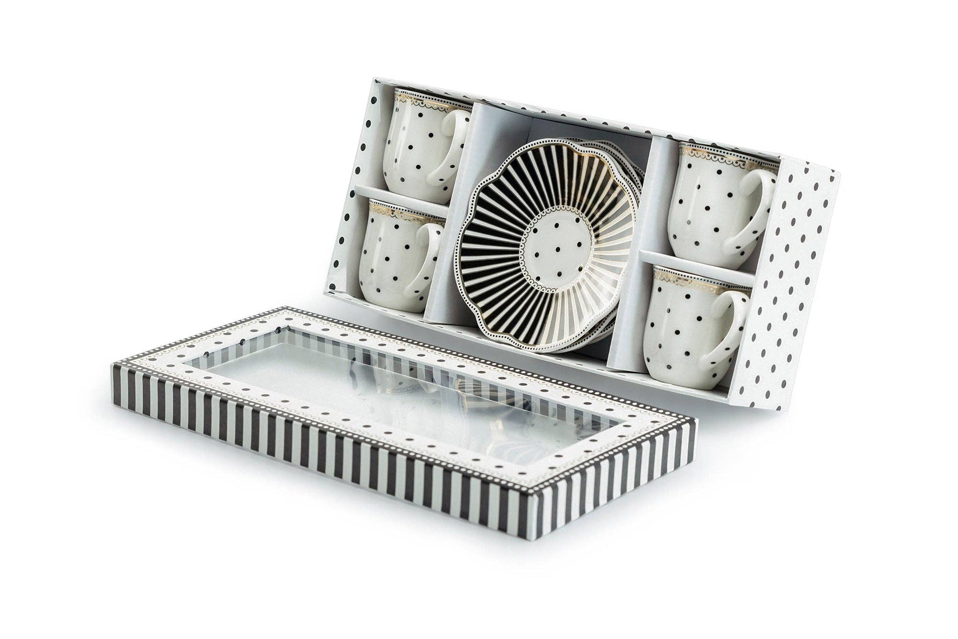 Grace Teaware Gift Boxed Black Josephine Stripes and Dots 2oz Demitasse Cups and Saucers