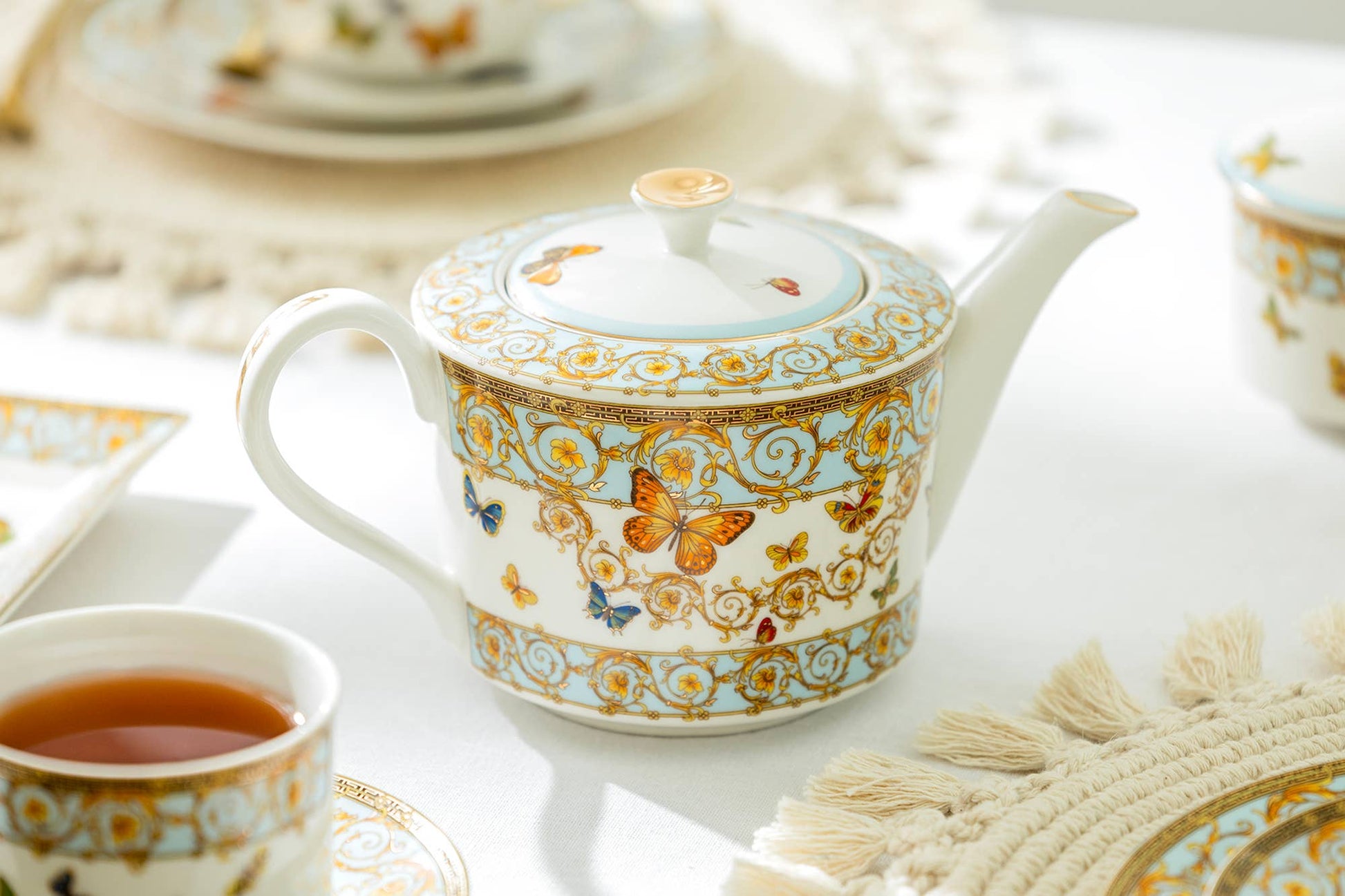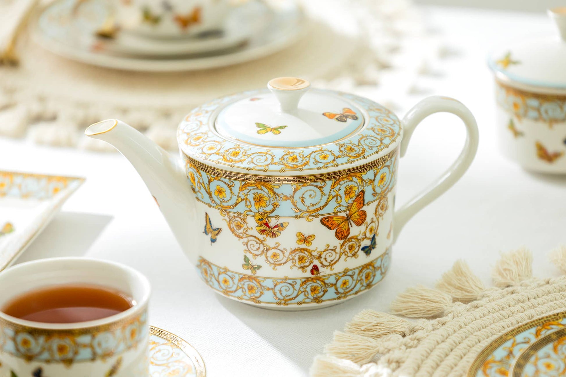 Grace Teaware - Butterflies with Blue Ornament 32oz Fine Porcelain Teapot