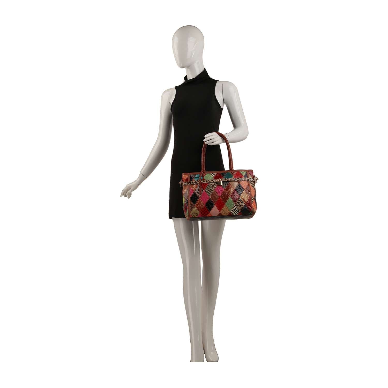 Handbag Express - Genuine Leather Colorful Belted Tote Handbag: Multi