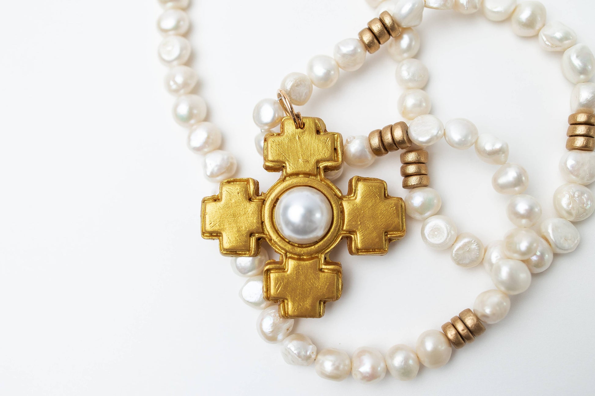 Hidden Truth Jewelry - 34" Fresh Water Pearls with Becky Pearl Cross