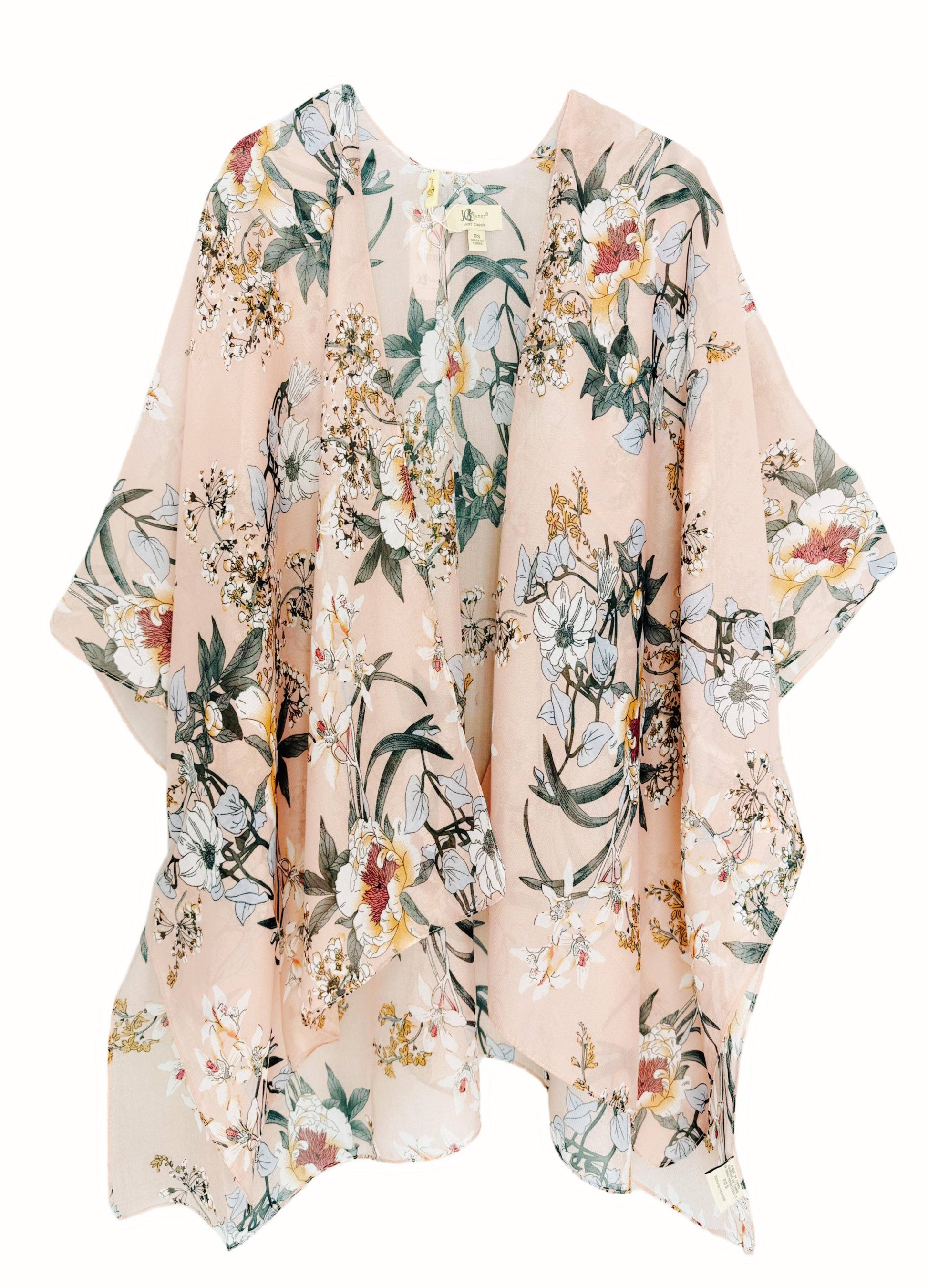 JC Sunny Fashion - 4 Colors--JC071231 Short Style Floral Kimono: Red