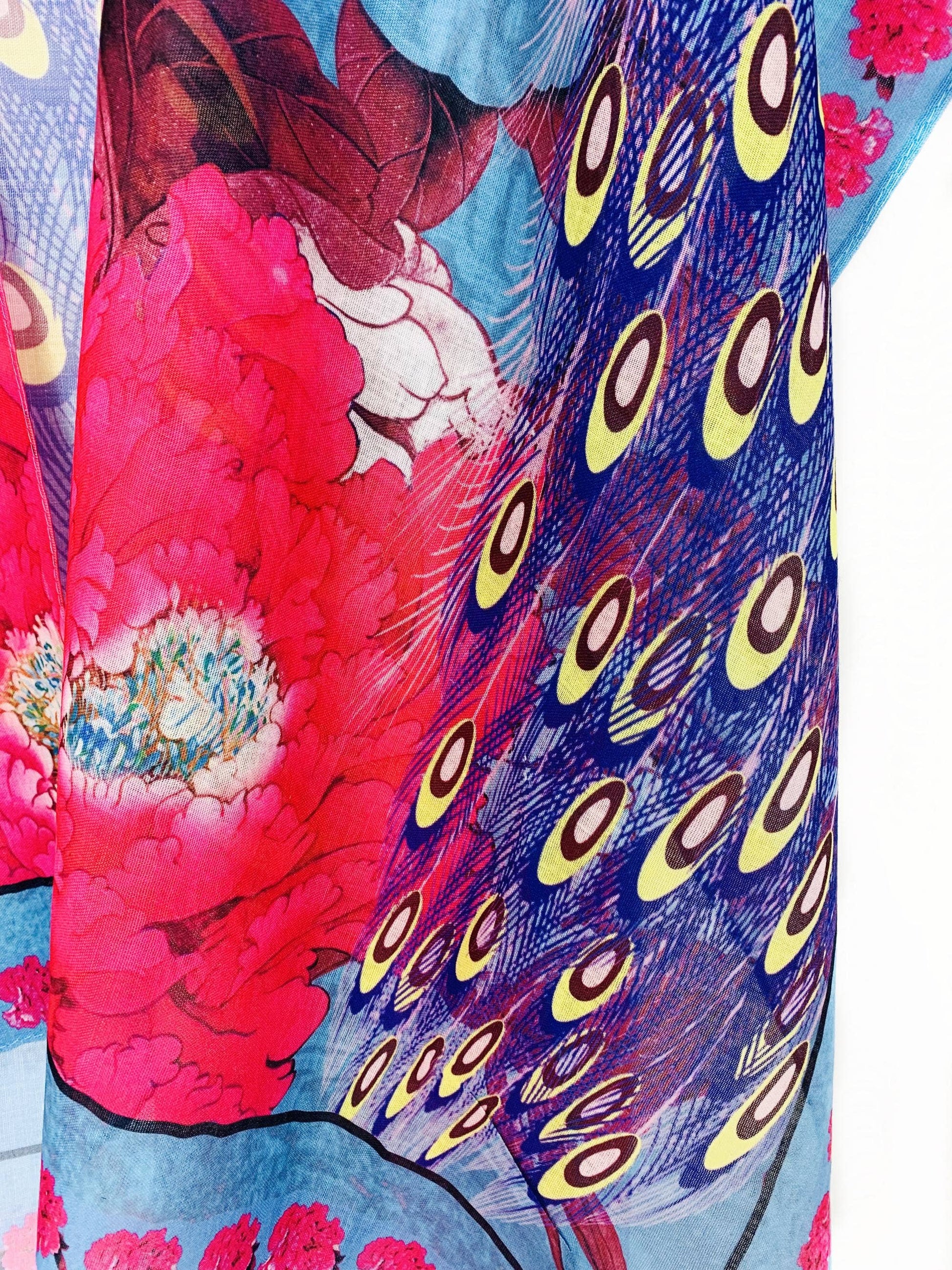 JC Sunny Fashion - Fuchsia-Blue Peacock & Peony Kimono