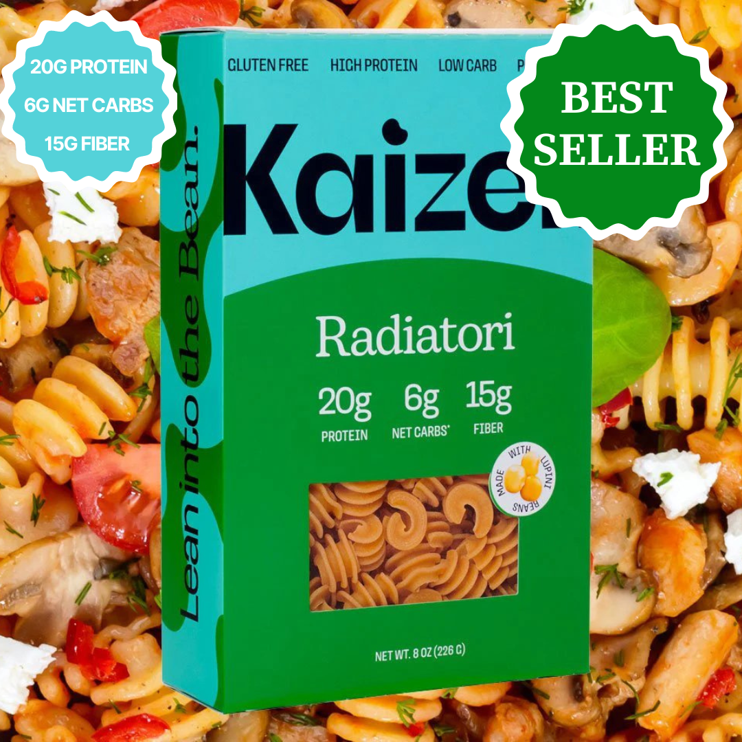 Kaizen's 6g Net Carb High Protein Radiatori Pasta is a kitchen revolution for pasta lovers watching their carbs. This is a dietary dream! With only 6 net carbs and a whopping 20 grams of protein per 2oz serving, this pasta turns the table on traditional carb-heavy meals. Whether it’s a creamy mac and cheese or a simple red sauce pasta. Fully vegan and made from non-GMO ingredients, it's grain-free, gluten-free, and Kosher-certified.