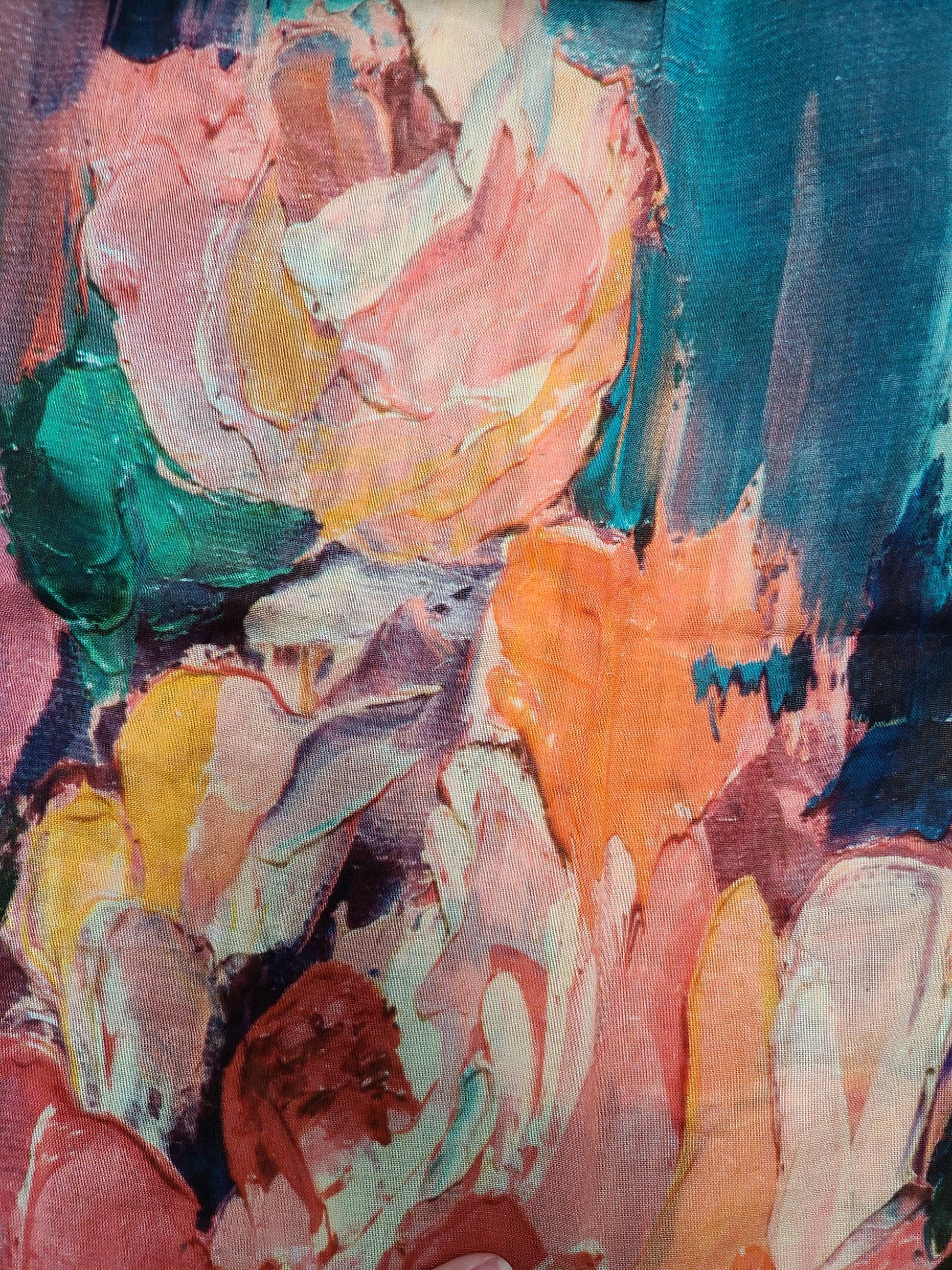 Embrace the vibrant color and sunshine vibes with the Abstract Salmon Cotton Modal Scarf from KikiSol. Inspired by a blend of urban and coastal lifestyles, this women's scarf is a testament to the brand's deep appreciation for arts, travel, and color. Carefully crafted, it requires hand wash for maintenance. This lively printed, easy flowing scarf is not just an accessory, it's a statement piece that adds a refreshing touch to your casual style.