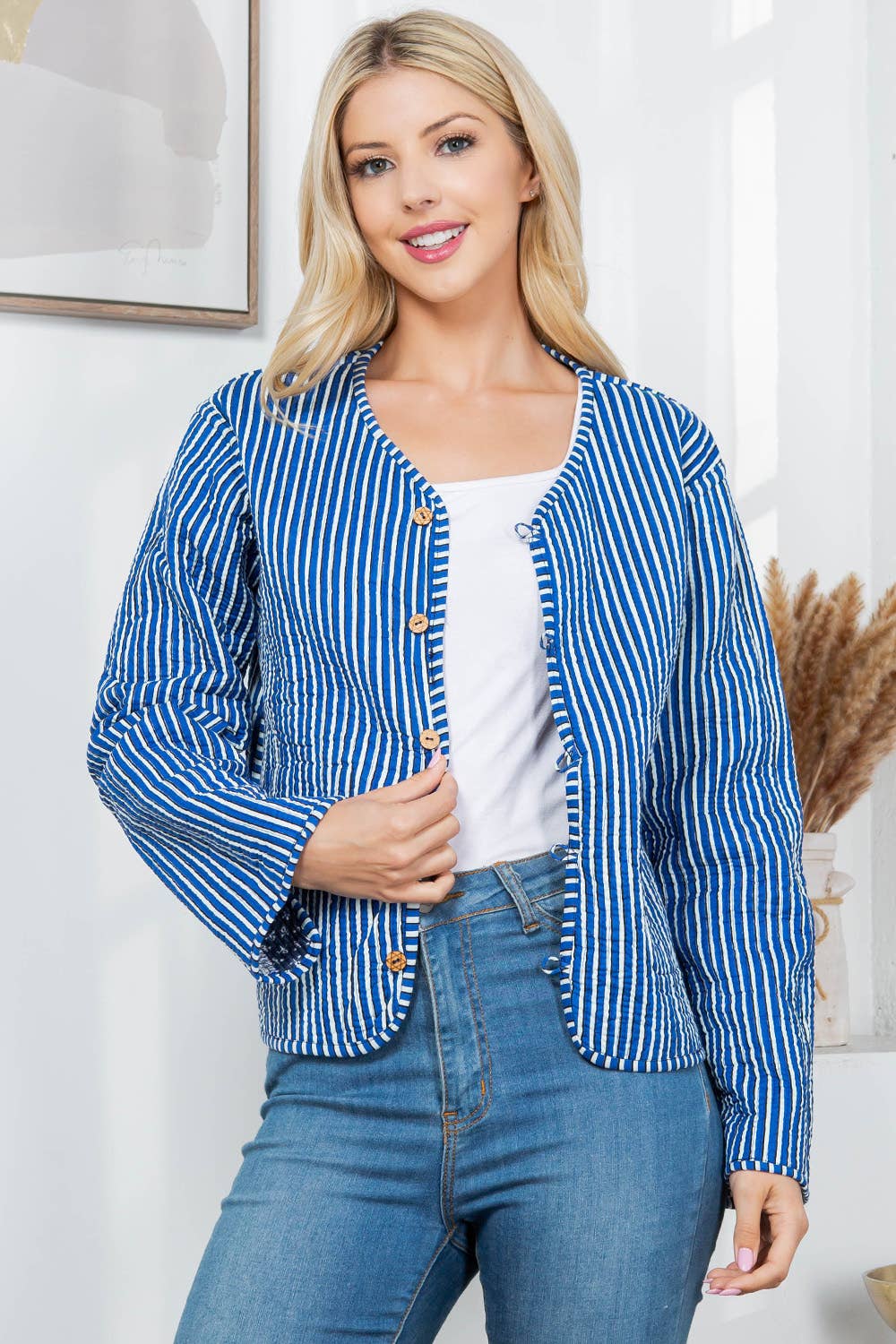 Take your style to the next level with our Quilted Patch Cotton Jacket! The reversible design offers versatility while the pockets add convenience. This trendy piece is a must-have in any wardrobe. Elevate your look and stay practical with our stylish jacket.