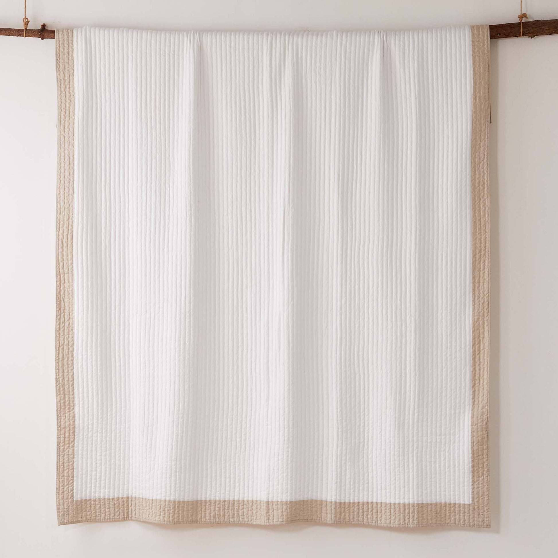 The Adobe Border Reversible Quilt Set by Levtex Home is inspired by ancient stitching techniques. This cream stitched design will immediately transform your bedroom. Made with the softest lightweight cotton, this reversible quilt features a durable luxurious quilt stitched pattern in a rich cream color, complemented with a thick natural tan border, reversing to the same design on the other. The Quilt Set is machine washable. Enjoy this for years to come!