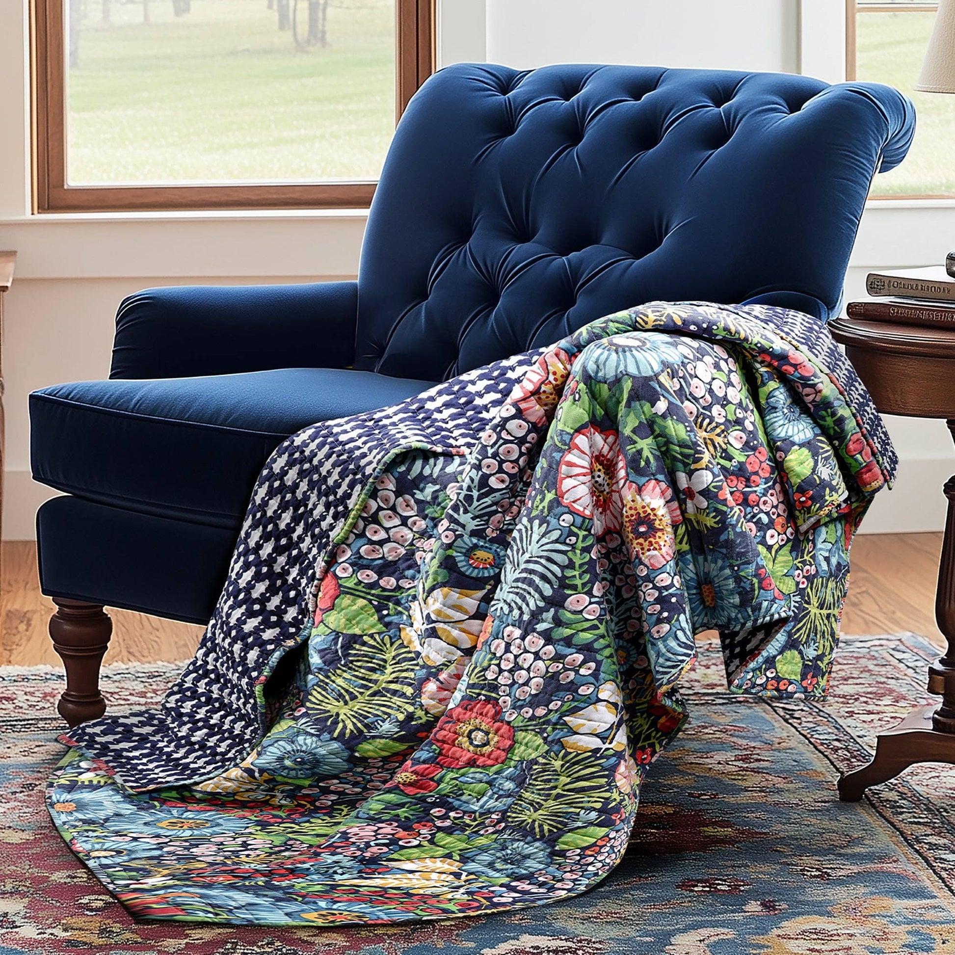 The Night Garden Reversible Throw by Levtex Home is inspired by a flourishing garden. Offered in navy, red, pink, green, ochre and white, this design will immediately transform any room in your home. This throw features painterly flowers and leaves on the front, reversing to a navy ikat on a white ground. The Throw (50x60in.) has a rayon front and cotton back, filled with a cotton-rich filler, and is machine washable. Enjoy this for years to come!