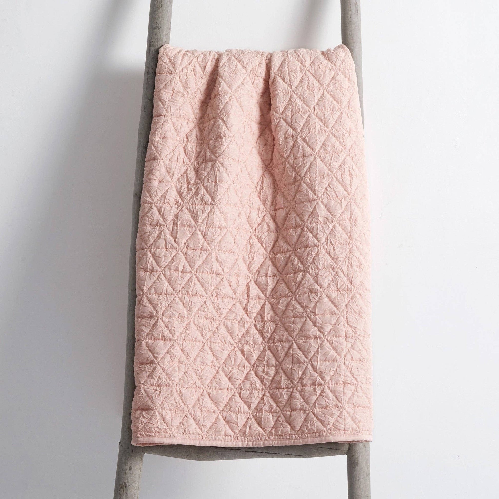 The Rowan Reversible Throw is inspired by boho chic fashion. Offered in many colors, this throw features beautiful chic crinkle quilted diamond design on the front, reversing to a solid color on the back. The Throw has a microfiber front and back, filled with a cotton-rich filler, and is machine washable.