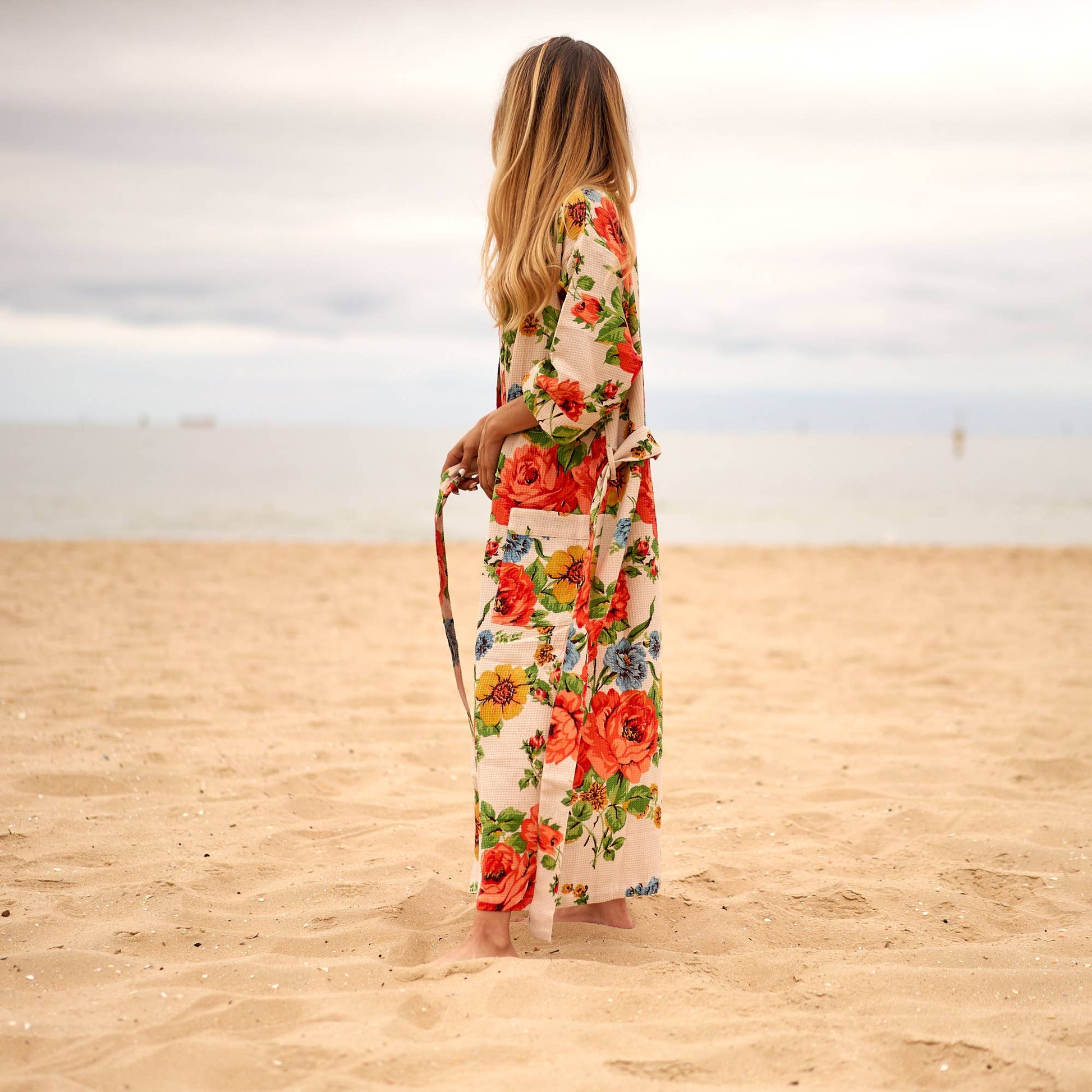 A beautiful Frida Kahlo inspired kimono robe for a super price. Perfect as a kimono, robe or a kaftan. Made from super comfy cotton waffle so treat yourself to ultimate comfort whether you are simply winding up at night, getting ready for the morning or just cozying up in your lounge to binge watch a move on Netflix.