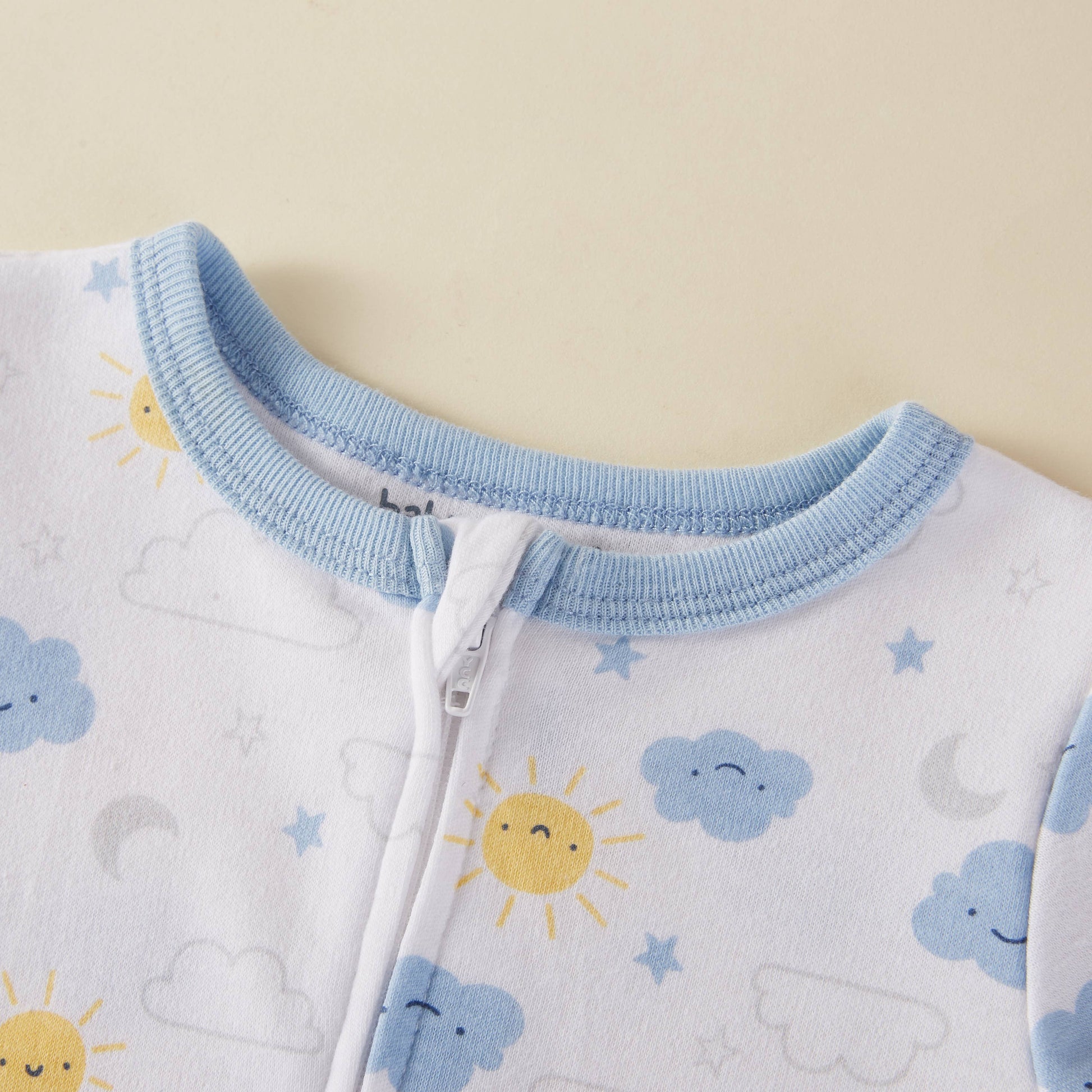 Cloud Sun Star Moon Pattern Zipper Footie Pajamas Romper