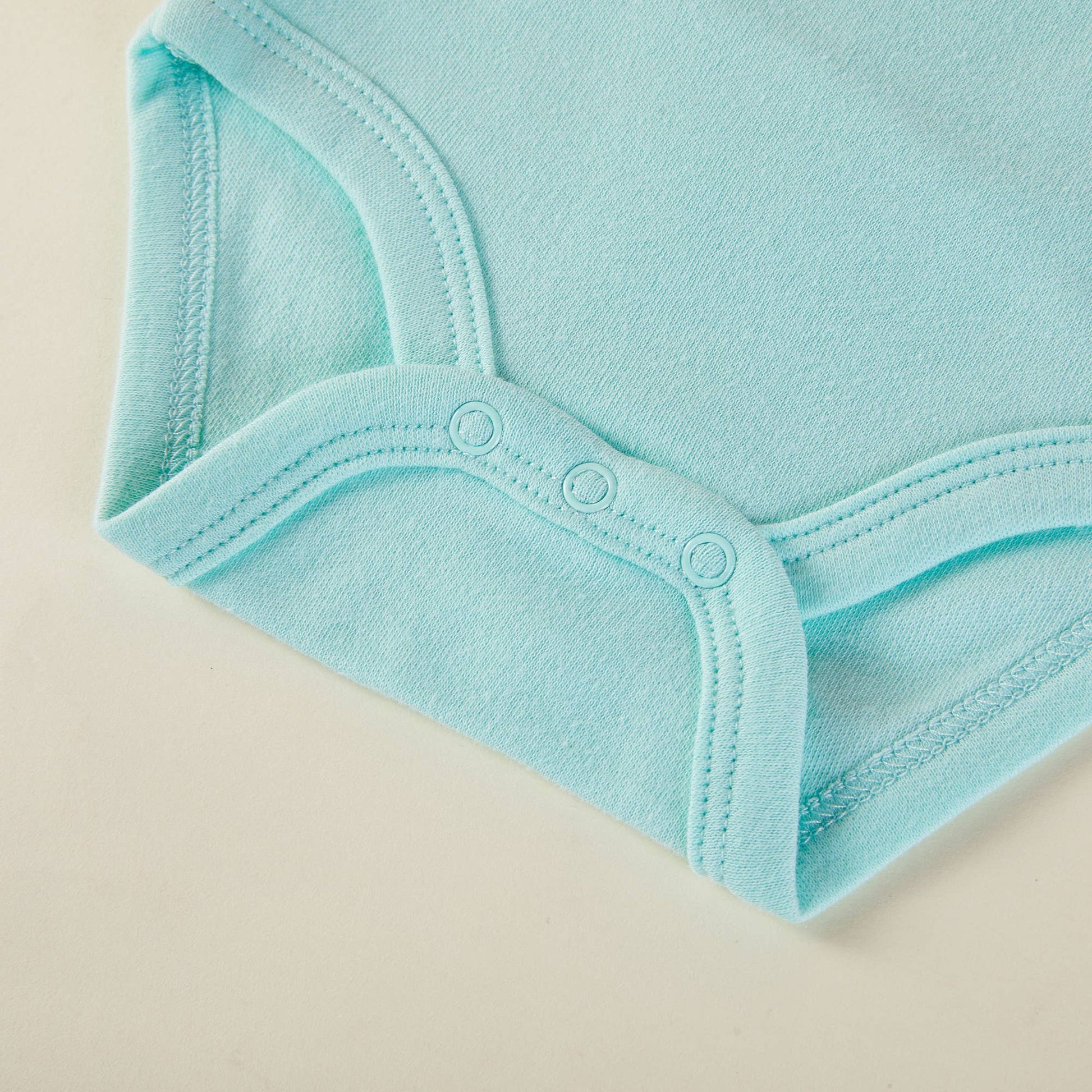 Lap shoulders; short sleeves; snaps at bottom