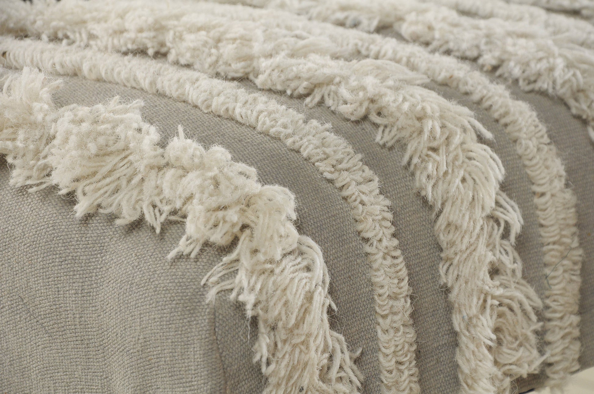 LR Home - Modern Stripped Cream Tufted Indoor Bench: Cream
