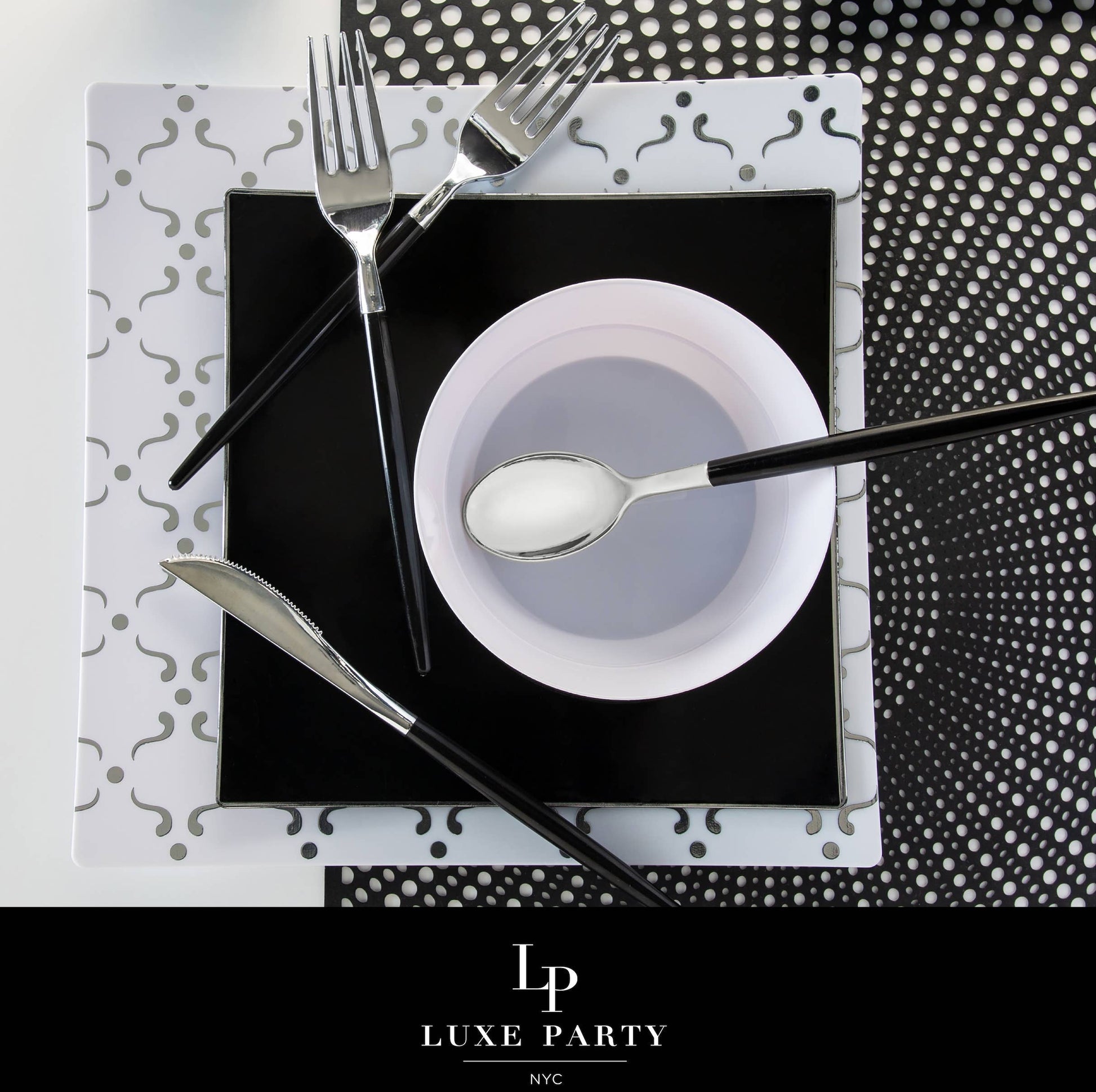 Luxe Party - Black • Silver Plastic Cutlery Set | 32 Pieces
