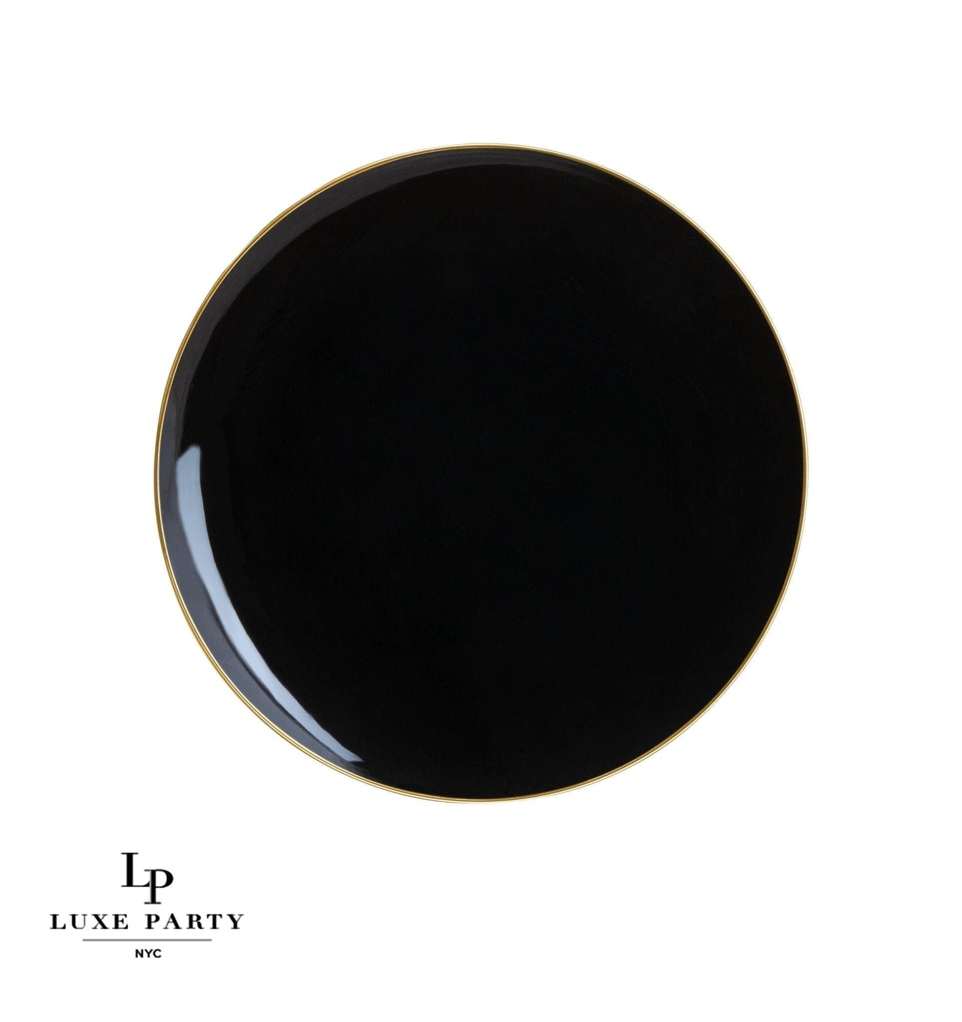 Luxe Party - Round Black • Gold Plastic Plates | 10 Pack: 7.25" Appetizer Plates