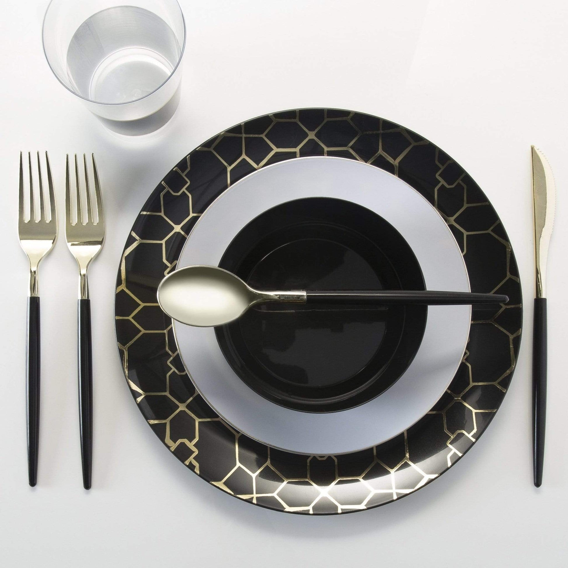 Luxe Party - Round White • Gold Plastic Plates | 10 Pack: 10.25" Dinner Plates